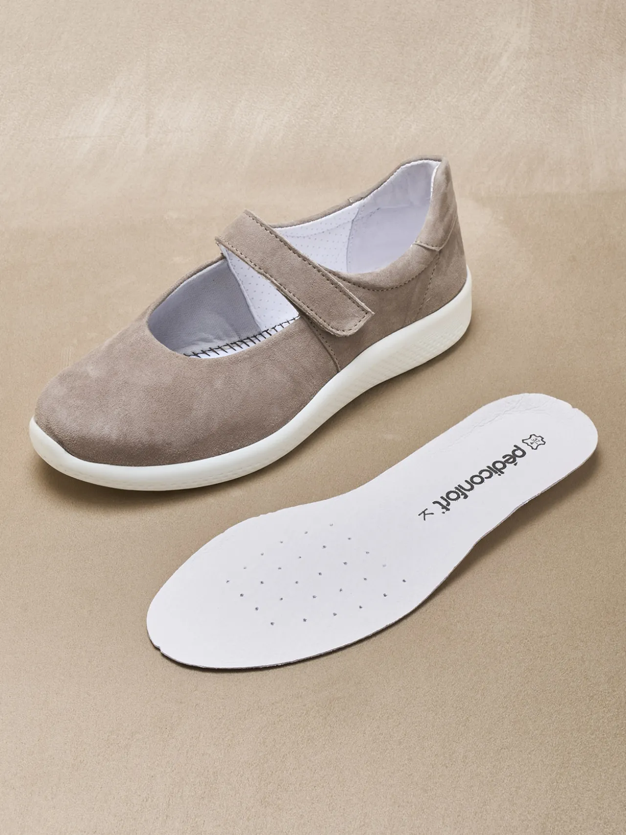 - La douceur d’un cuir velours, la praticité d’une patte scratch et le confort d’une semelle intérieure sur mousse épaisse… Cette paire de babies beige PEDICONFORT® ne manque décidément pas d’atouts !