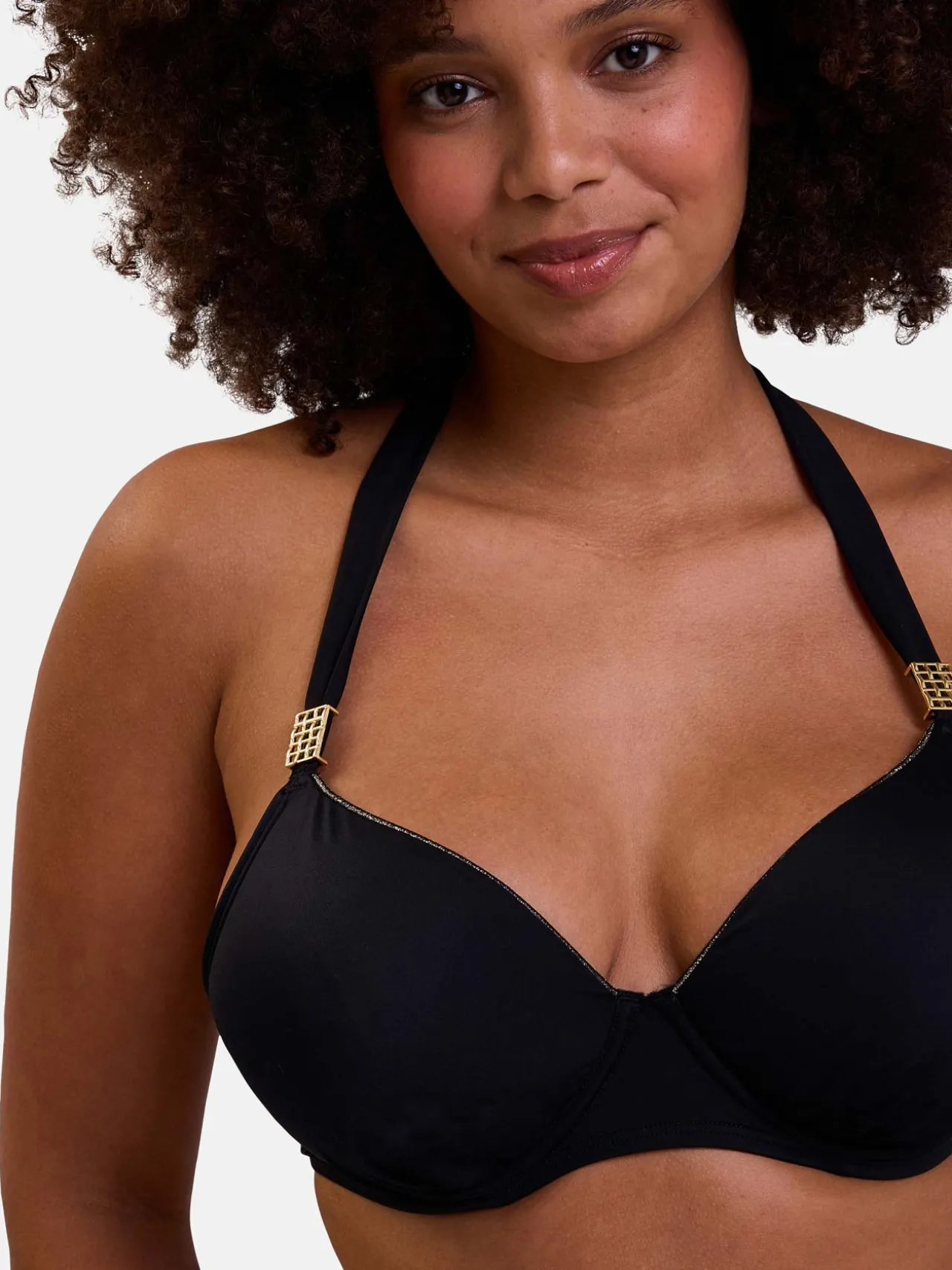 Speekabooshape est la ligne sculptante bain chic et sensuelle de cette saison. Formes originales et séduisantes. Ce haut de maillot de bain tour de cou Bain Plunge à armatures de SANS COMPLEXE, aux bonnets en mousse fine et légère est idéal pour bronzer.