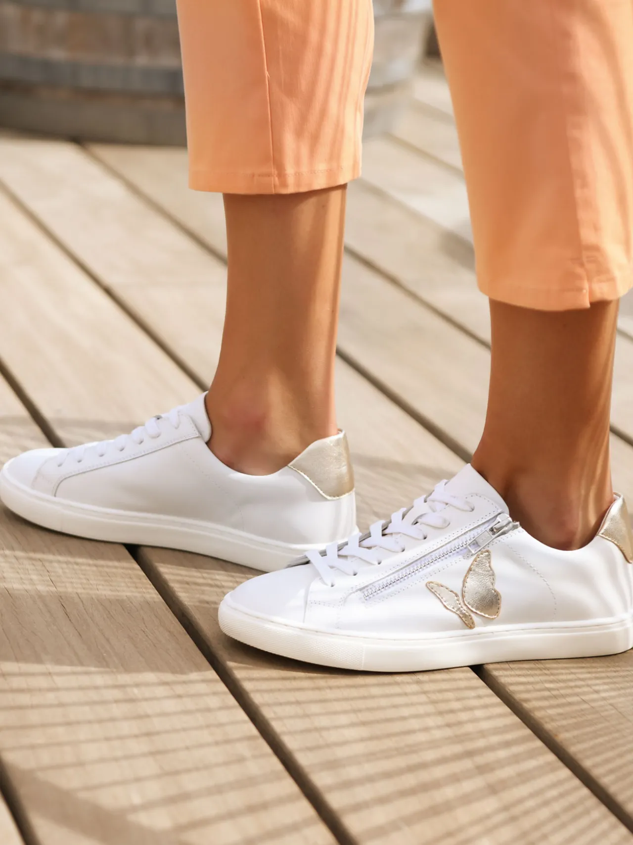 Les baskets issues de la collab Valgril X Pédiconfort, Valgril pour Valérie Grillet s’enrichissent d’un joli papillon stylisé sur le côté et d’un contrefort dorés… on craque ! Grâce à leur zip côté, elles s’enfilent et se retirent en un clin d’oeil… on apprécie !