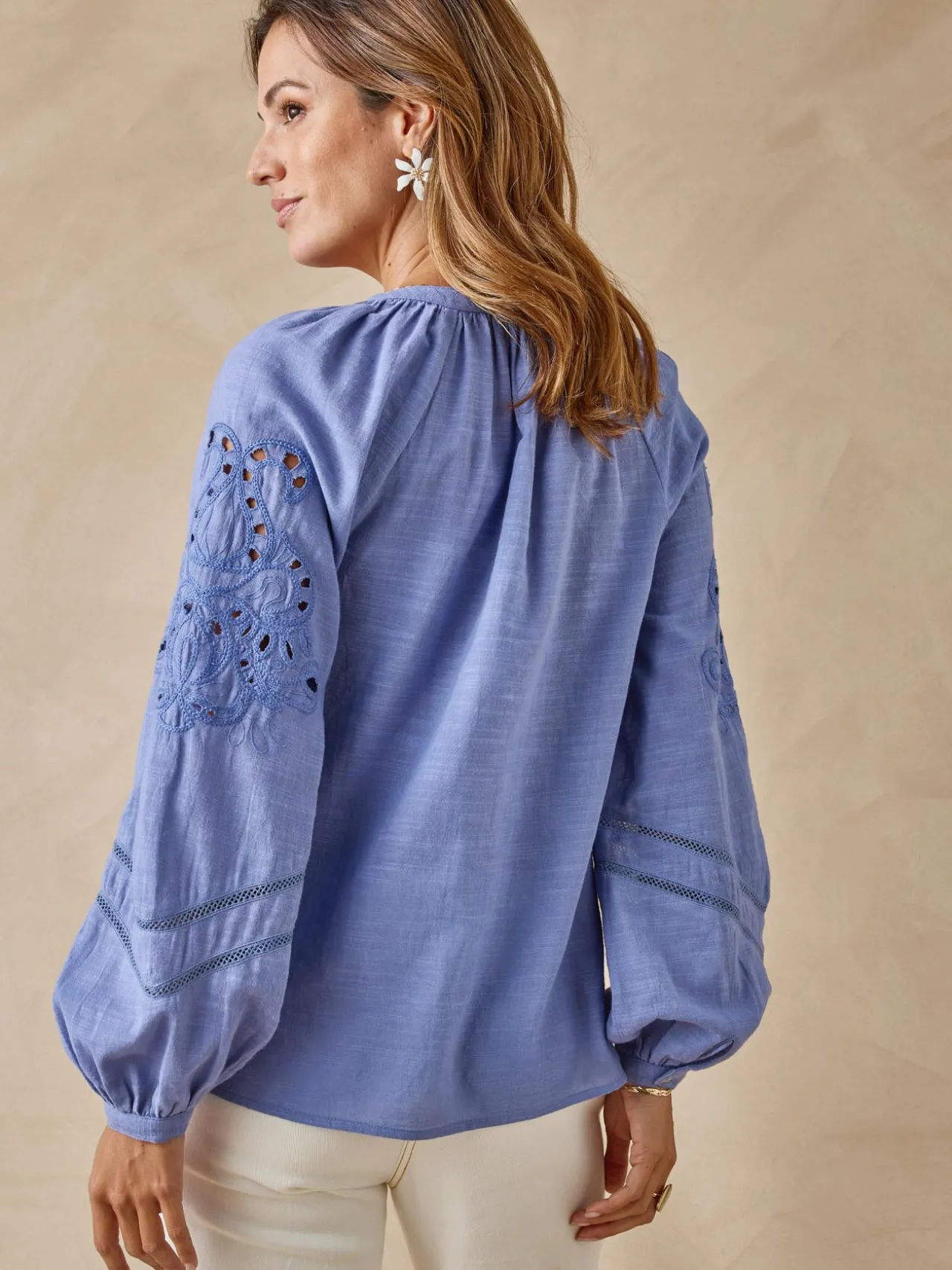 Un esprit folk revisité au travers de cette jolie blouse aux manches brodées. Dans un esprit actuel, vous l’associerez à un petit gilet sans manches, un chino, un jean ou une petite jupe pour composer une tenue juste parfaite !