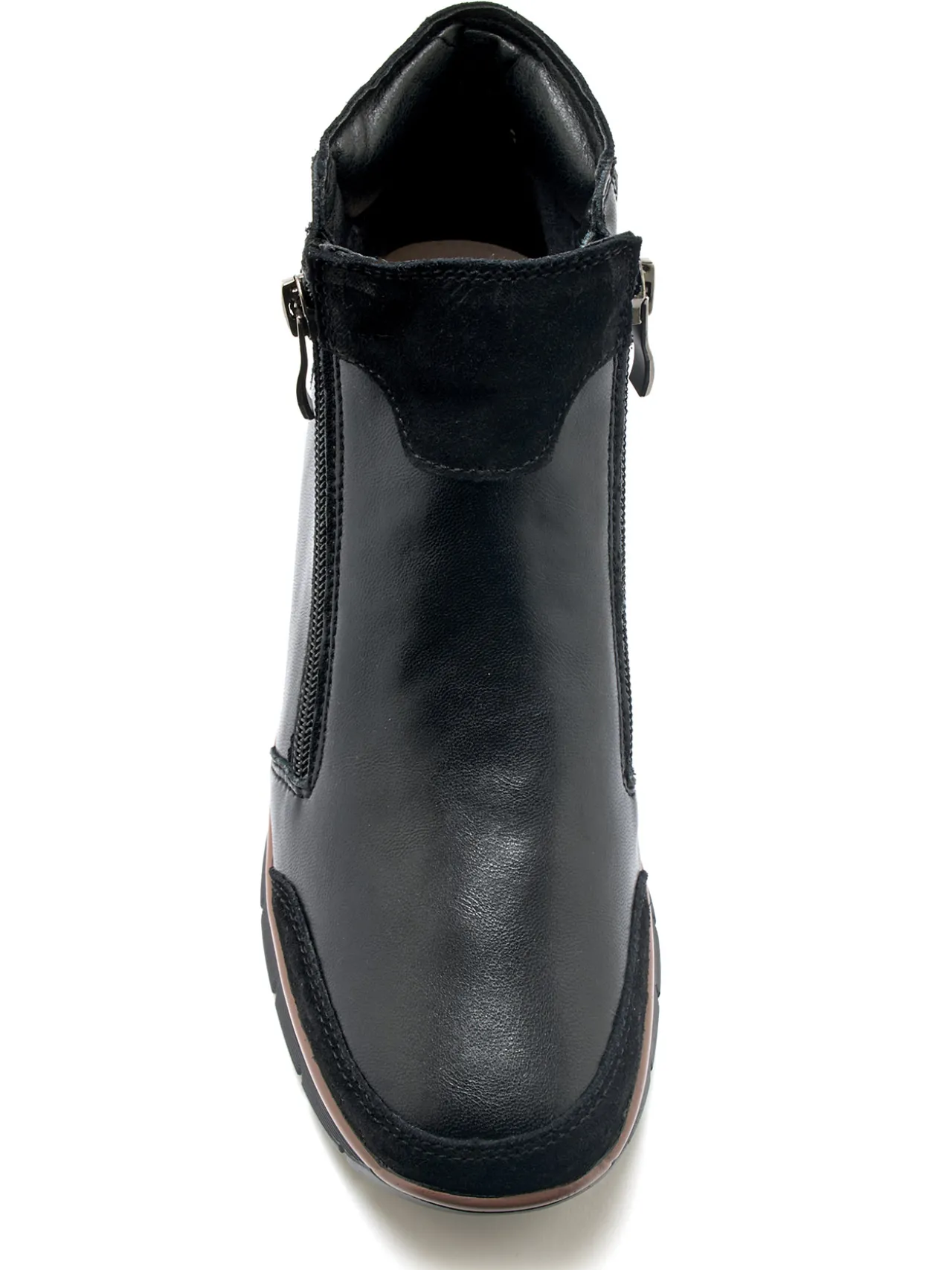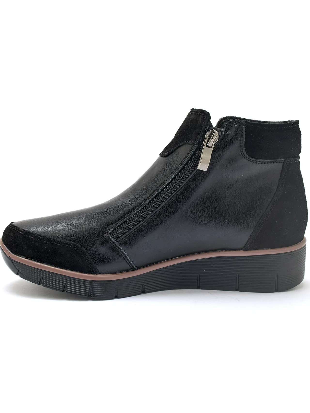 Largeur confort pour ces boots compensées femme, une largeur adaptée aux pieds exigeants souhaitant un confort supérieur.
