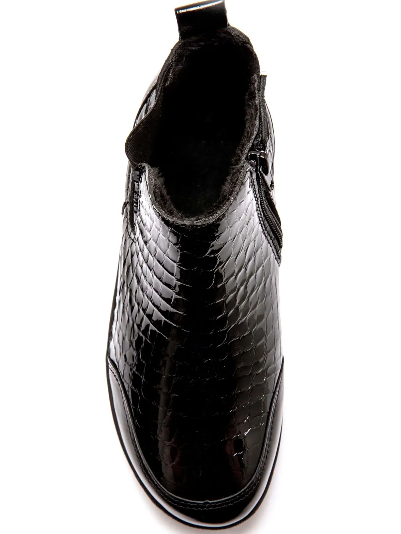 Dessus : cuir verni façon reptile.