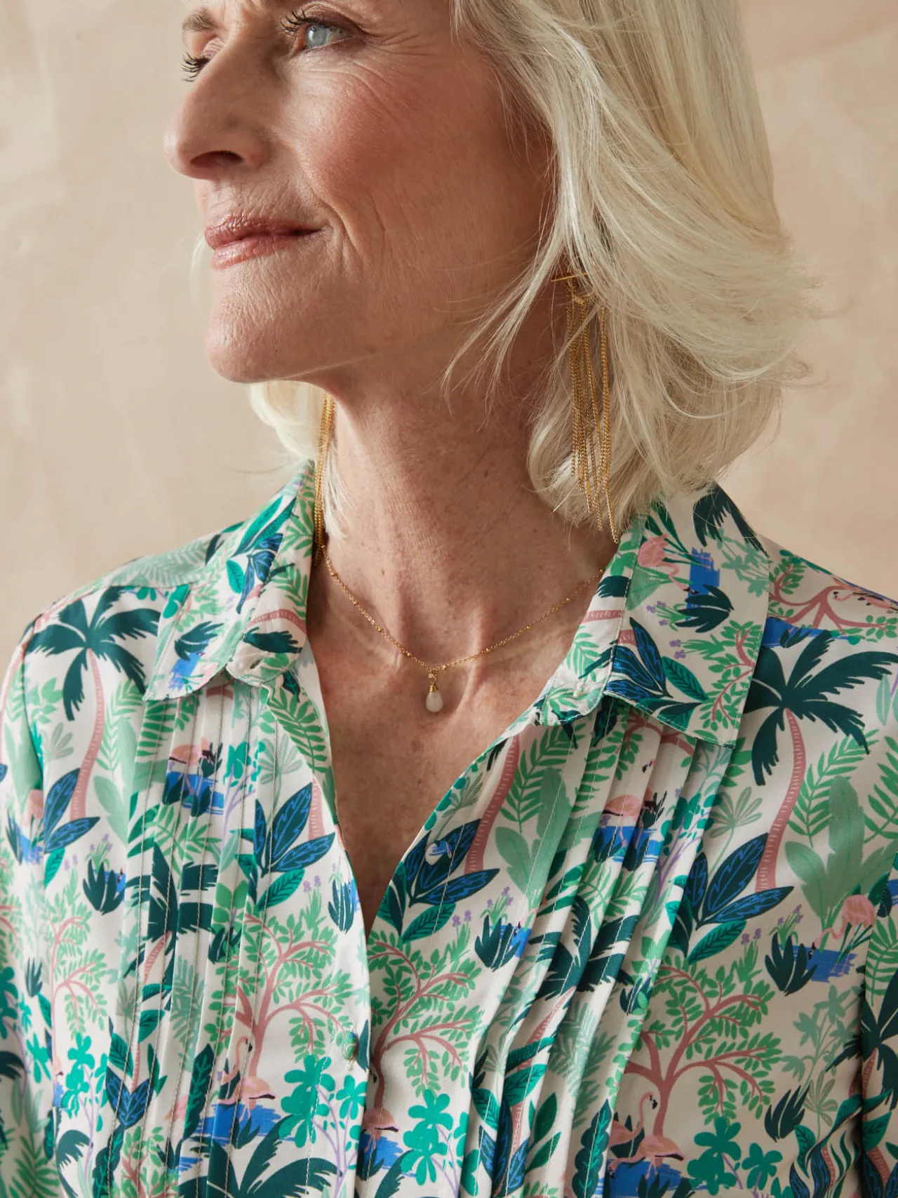 Ce chemisier à plis est conçu pour toutes les morphologies : petites et grandes tailles.