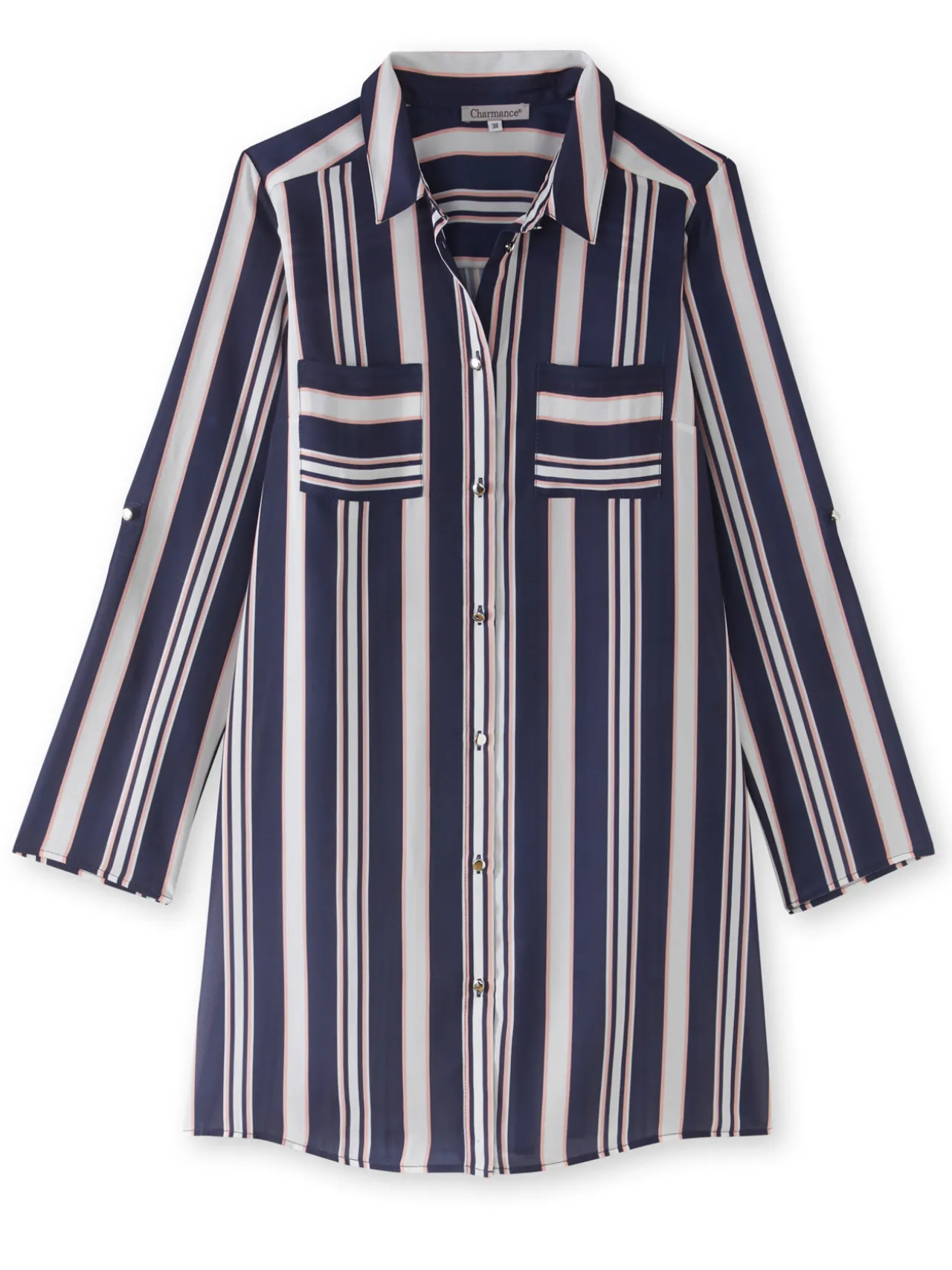 Ce chemisier à rayures est conçu pour s’adapter à toutes les morphologies : petites et grandes tailles.