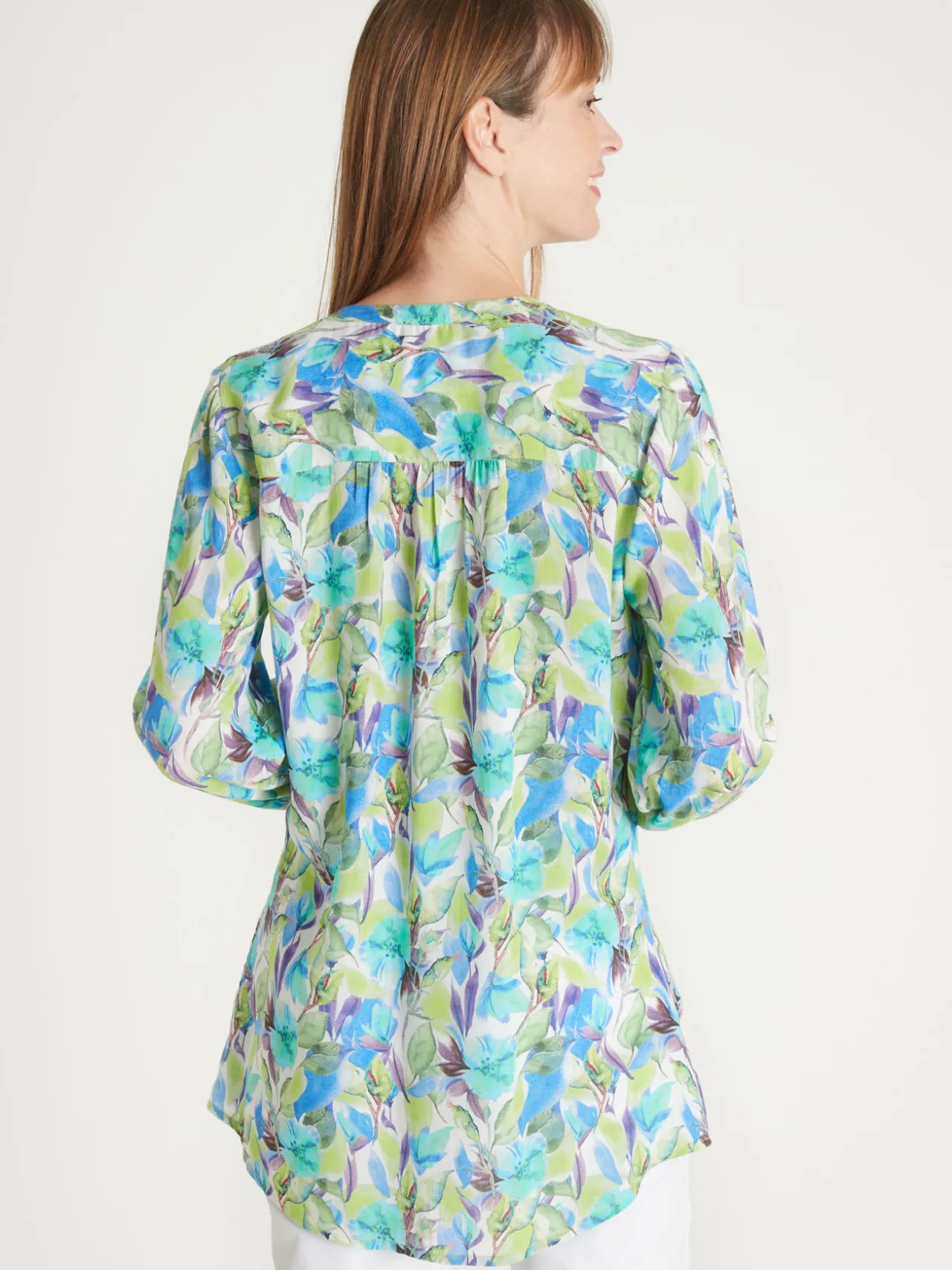 Ce chemisier tunique est conçu pour s’adapter à toutes les morphologies : petites et grandes tailles.