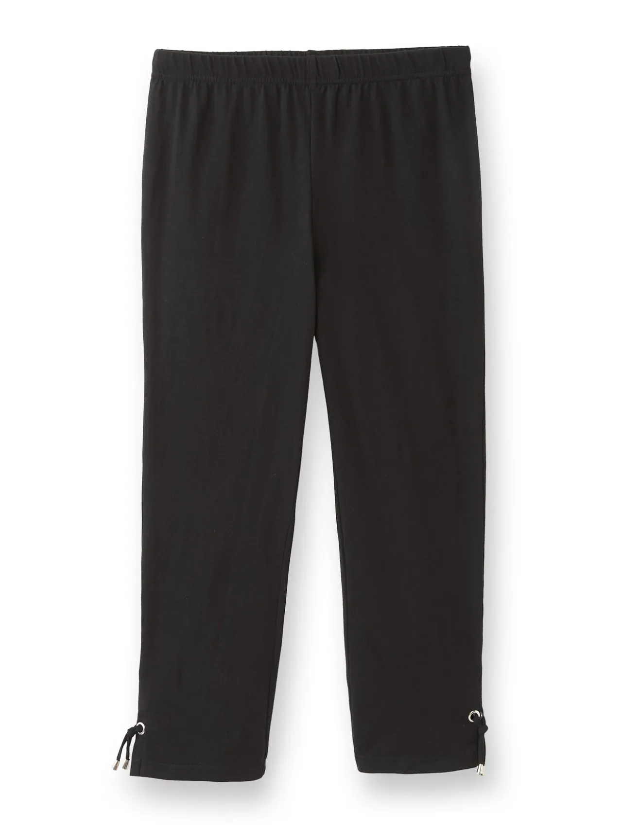 Le corsaire à lacets : un indispensable de l’été qui s’associe avec tout ! On aime sa fantaisie de nouette sur gros oeillets argentés au bas des jambes.