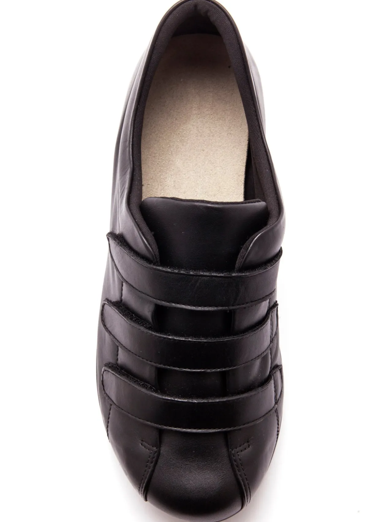 Dessus : cuir pleine fleur à fermeture par 3 pattes auto-agrippantes pour une ouverture totale et un réglage sur mesure. Doublure : textile traité Sanitized® (antibactérien) sur mousse. Semelle intérieure : cuir sur mousse, amovible (pour placer votre propre semelle correctrice) et à galbe anatomique. Semelle ultra légère : polyuréthane.