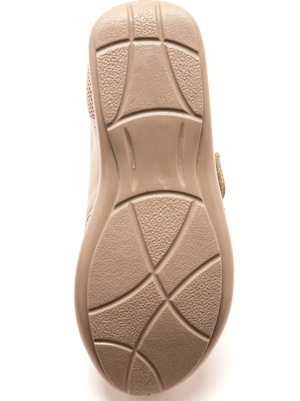 Grand volume intérieur offrant beaucoup d’espace pour les orteils. Dessus : cuir et textile aéré. 1 patte auto-agrippante pour un enfilage aisé, une ouverture totale et une parfaite adaptation à la morphologie de votre pied. Doublure : textile sur mousse. Semelle intérieure : cuir sur mousse épaisse (aérosemelle®), amovible à galbe anatomique.