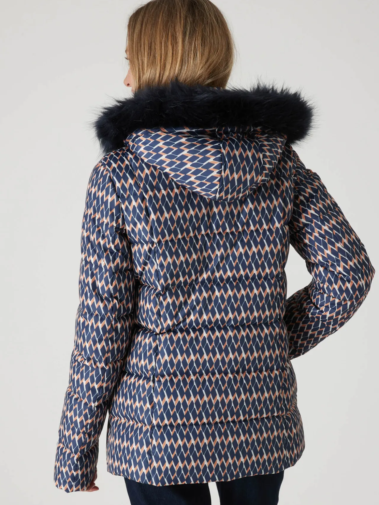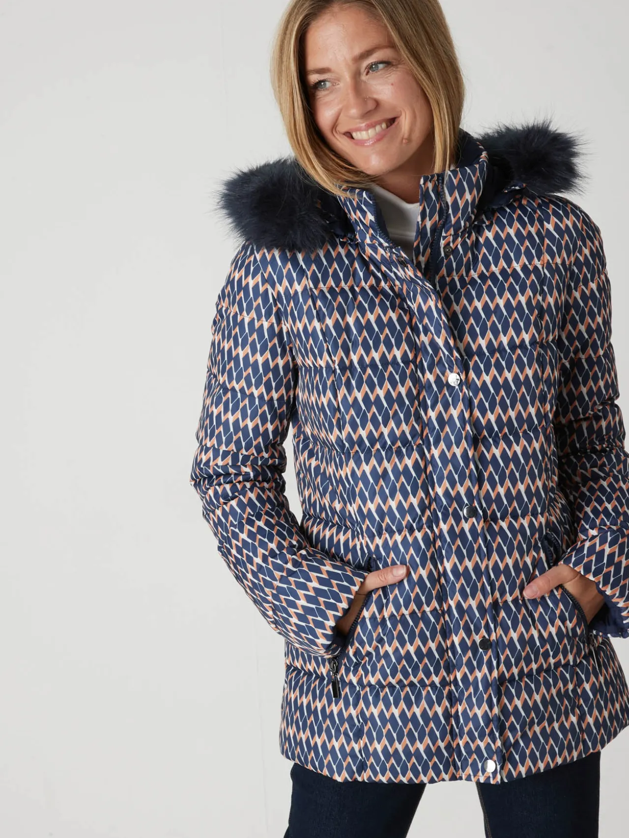 Cette parka imprimée femme est conçue pour s’adapter à toutes les morphologies : petites et grandes tailles.