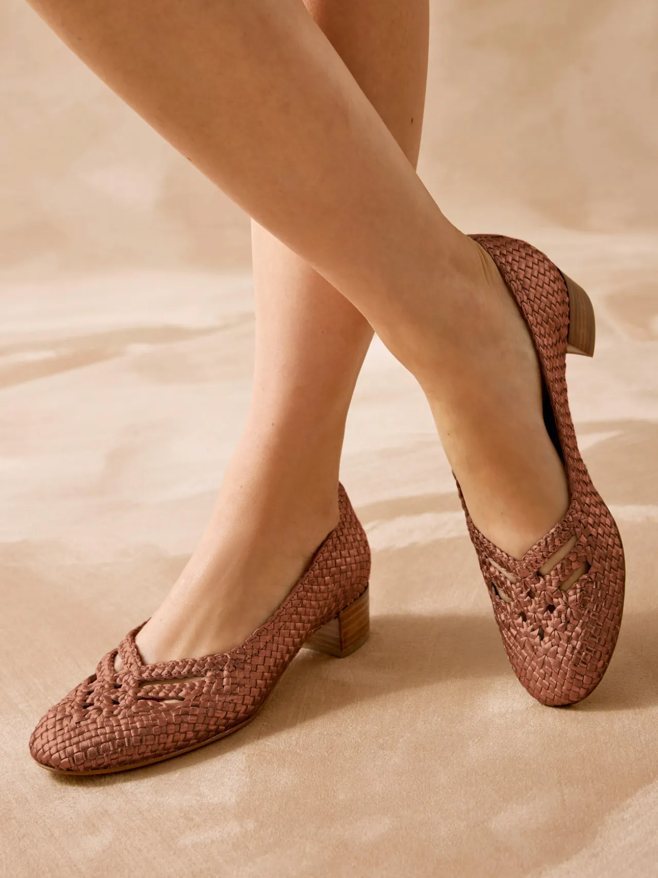 Le dessus cuir tressé à détails ajourés de ces escarpins PEDICONFORT® s’adapte en souplesse à la morphologie du pied. Ces escarpins tressés sont munis d’une aérosemelle®, une semelle montée sur mousse épaisse qui amortit les chocs de la marche.