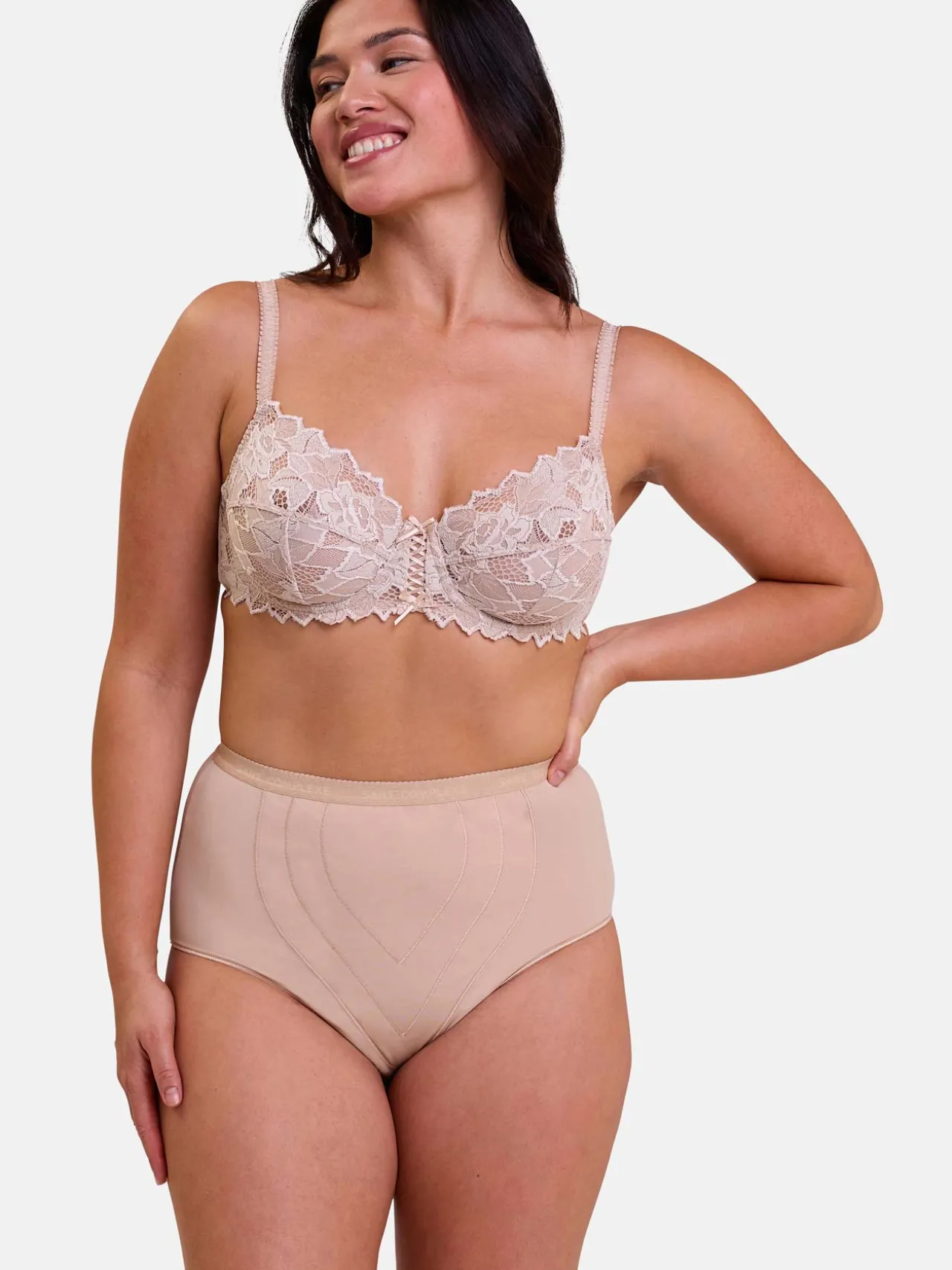 Culotte gainante à taille haute élastiquée avec plastron ventral doublé coton.