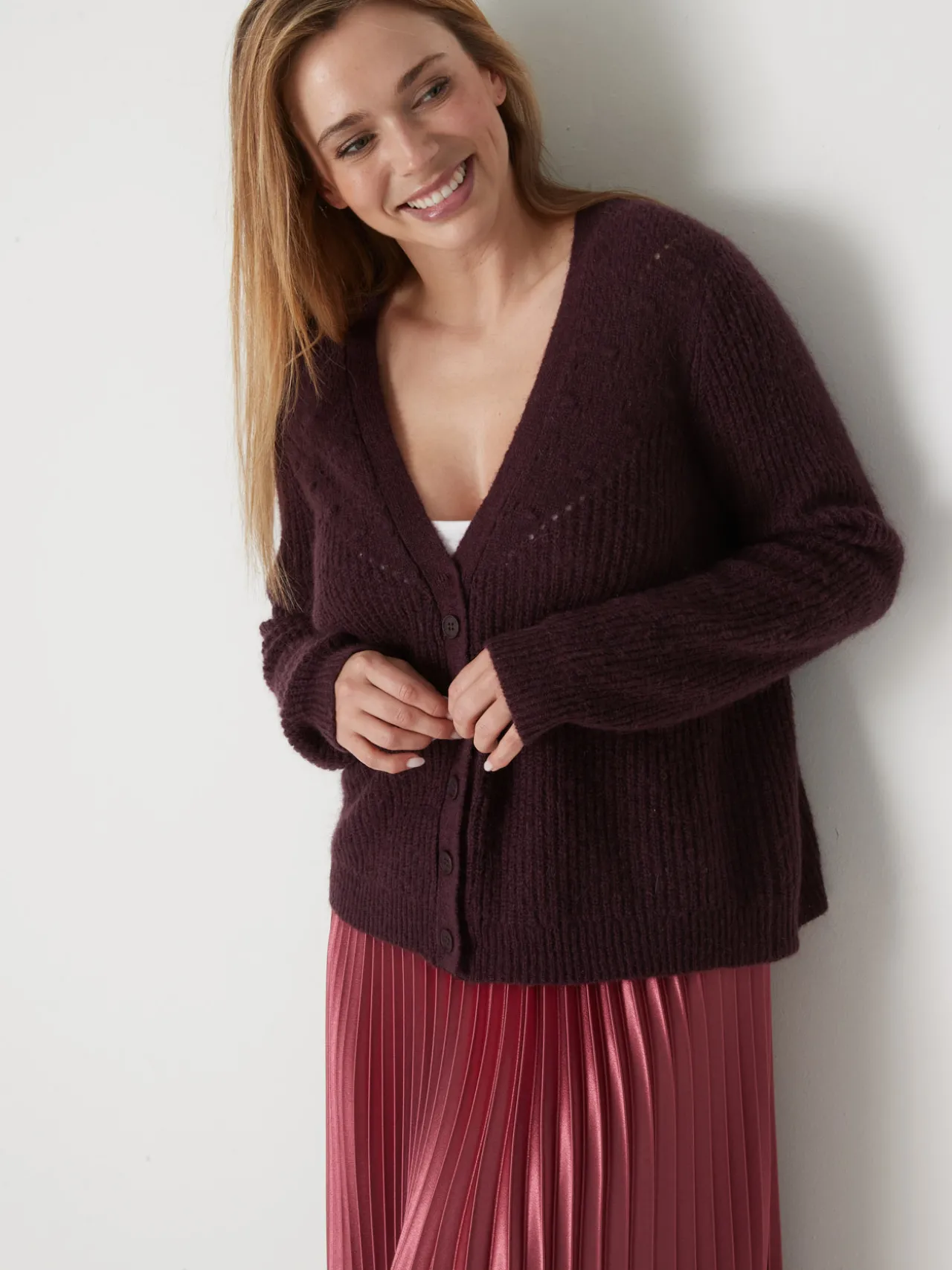 Tout en douceur, tout en chaleur le gilet V enrichi de laine et de mohair. A choisir dans une gamme de jolis unis pile dans la tendance.