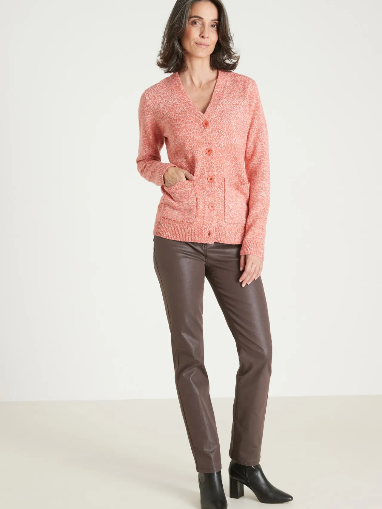 Ce gilet chiné femme est conçu pour s’adapter à toutes les morphologies : petites et grandes tailles.