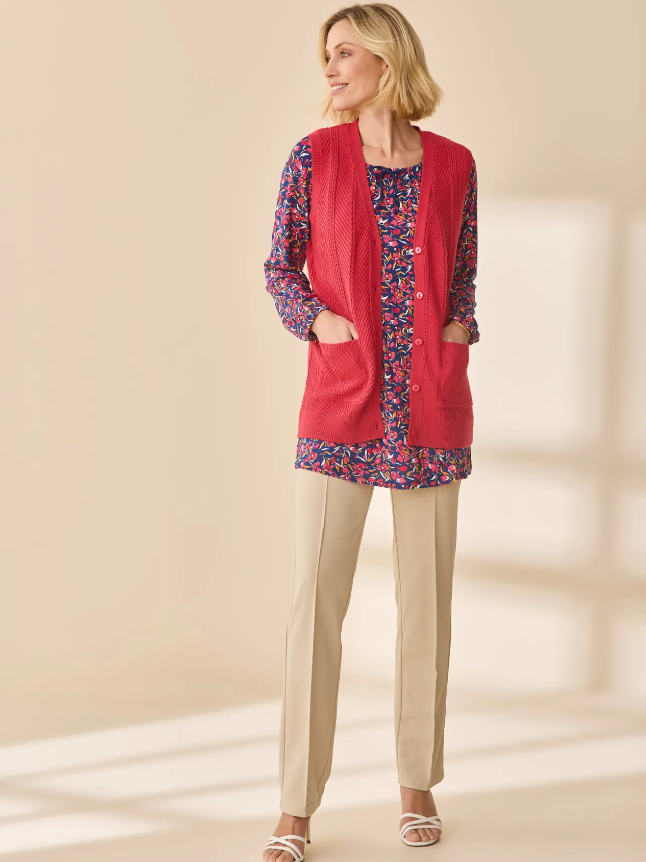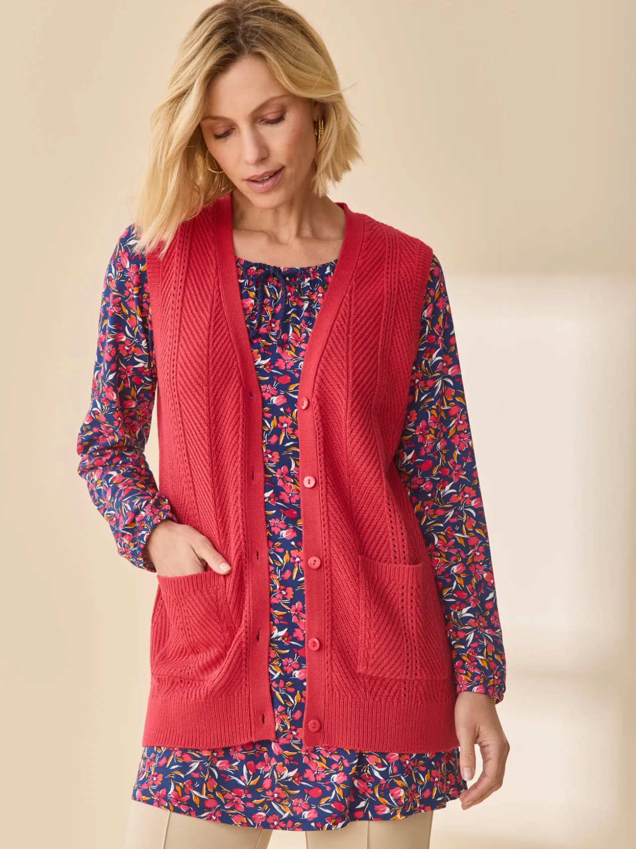 Gilet ajouré en maille 100% acrylique, d’entretien facile.