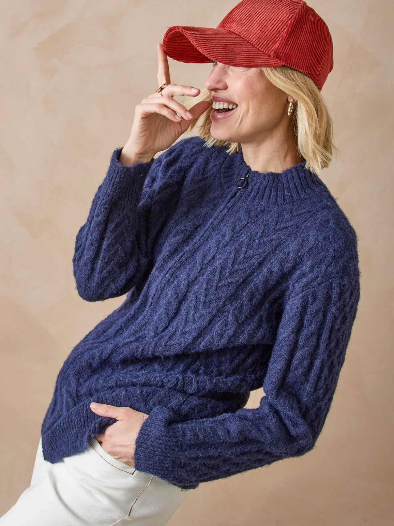 Pour réchauffer les frileuses, pour nous accompagner avec style lors de nos sorties et week-ends, le gilet col montant est idéal. Celui-ci joue la fantaisie de torsades et de jeux de points et petit bonus chaleur : sa touche de laine !