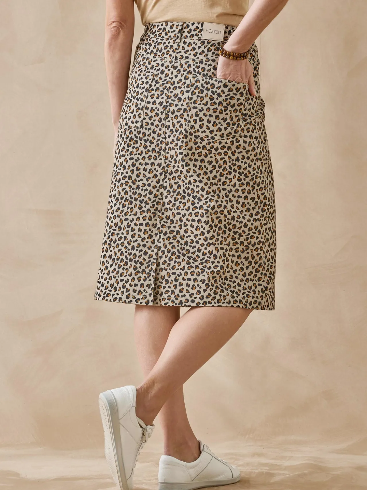 Un imprimé audacieux qui s’inscrit dans la grande tendance « esprit animalier » pour la jupe droite confectionnée dans un tissu sergé extensible confortable. Une pièce forte du dressing, à associer à un haut noir ou dans des tonalités de beige.