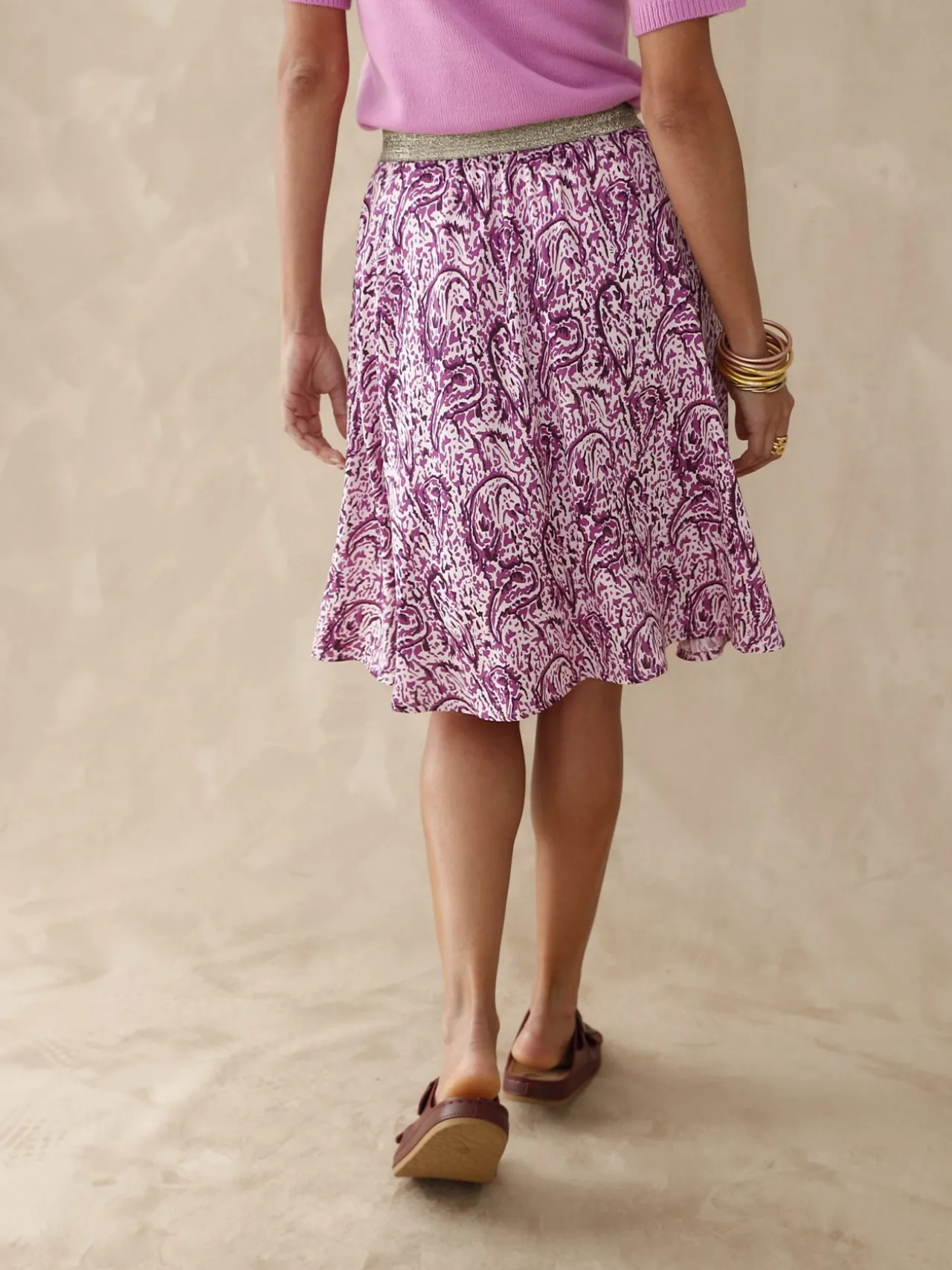 Cette jupe élastiquée est exactement le modèle qu’il vous faut. Cette jupe courte s’adapte en souplesse à la taille et on adore le fil brillant qui rehausse sa ceinture.