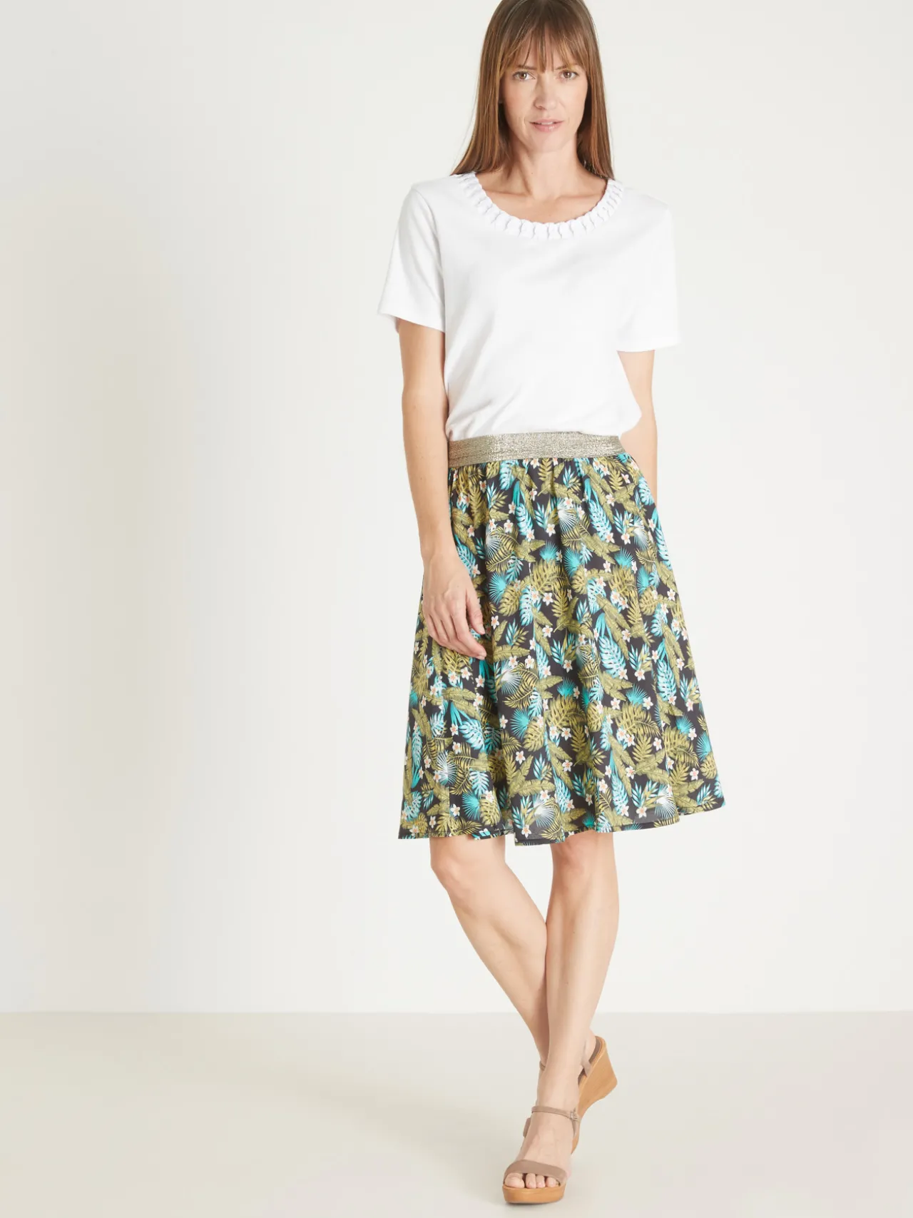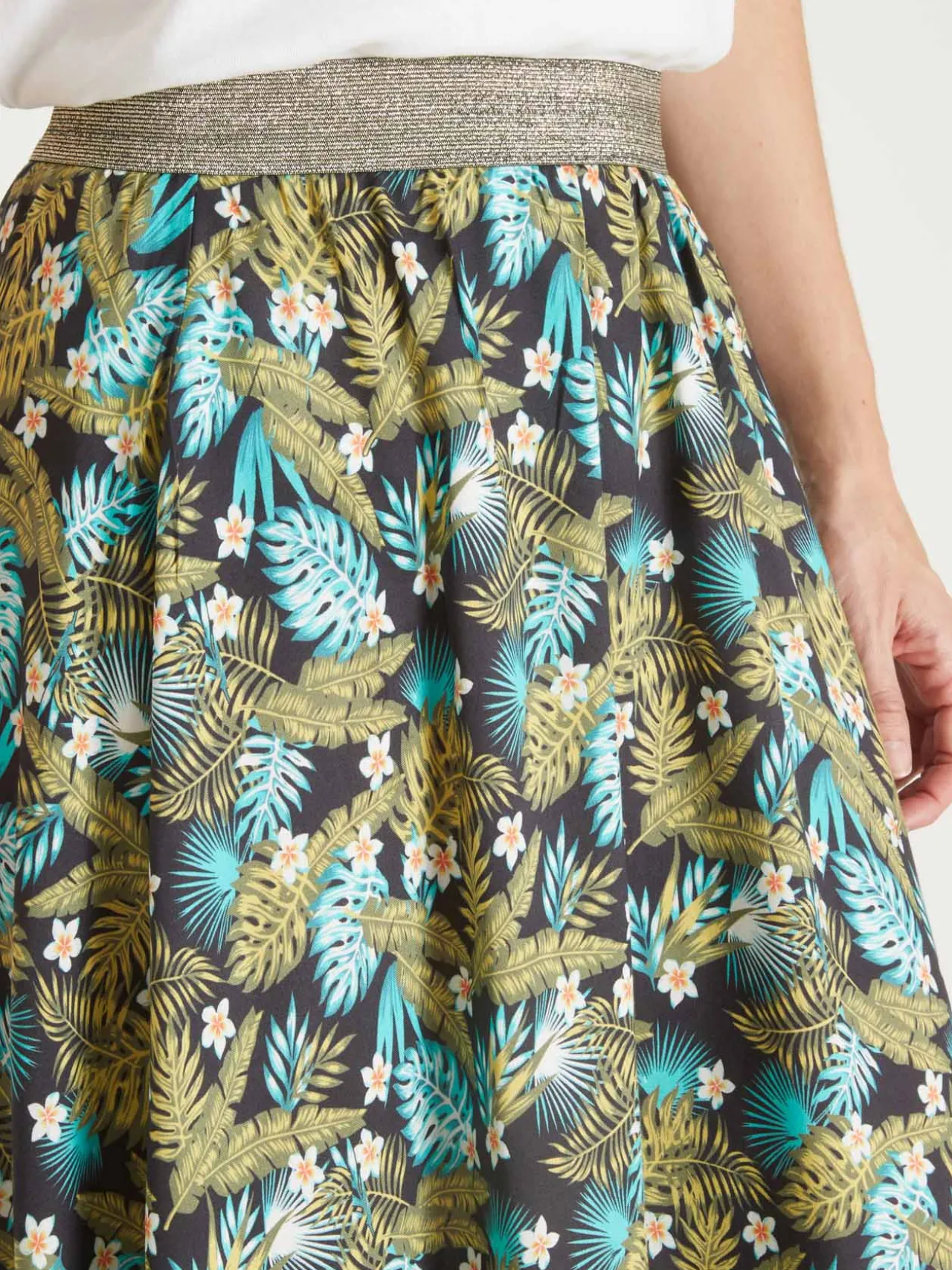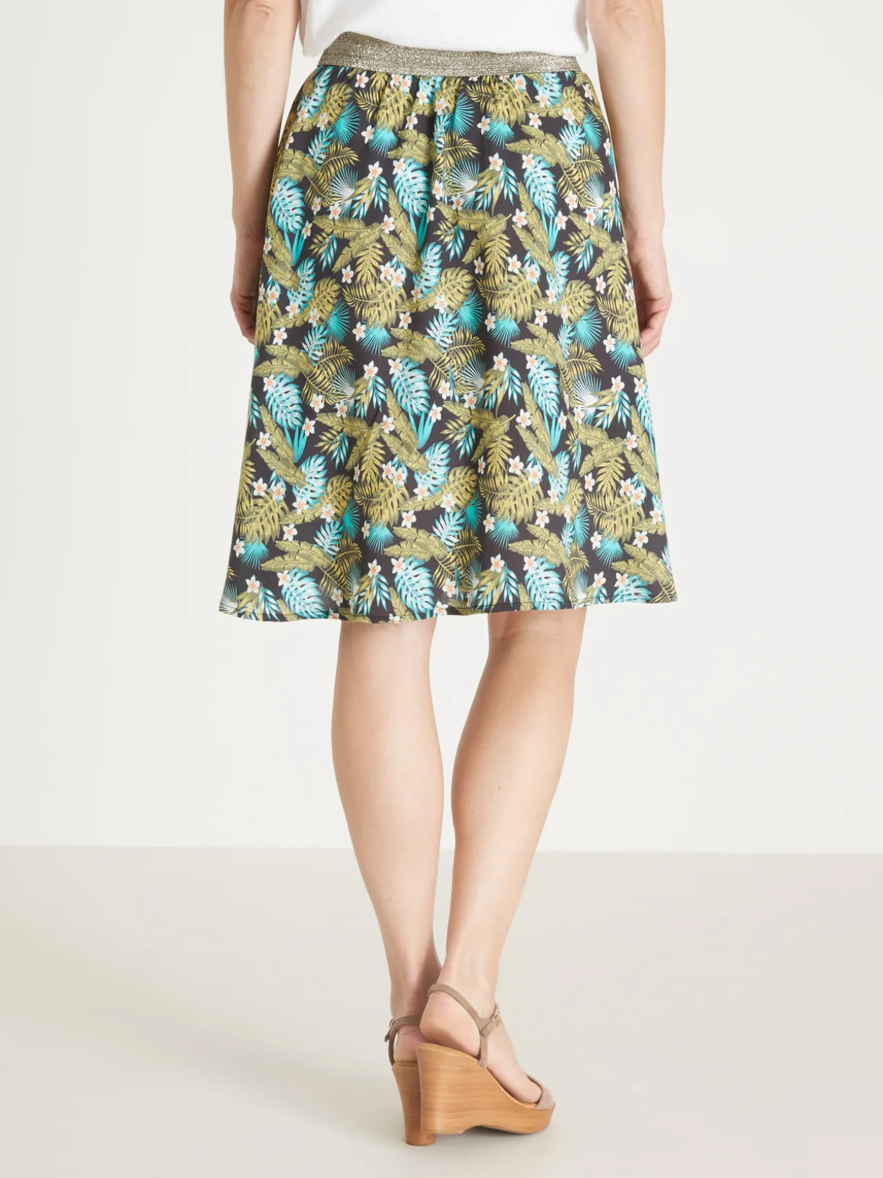 Cette jupe imprimée est conçue pour toutes les morphologies : petites et grandes tailles.