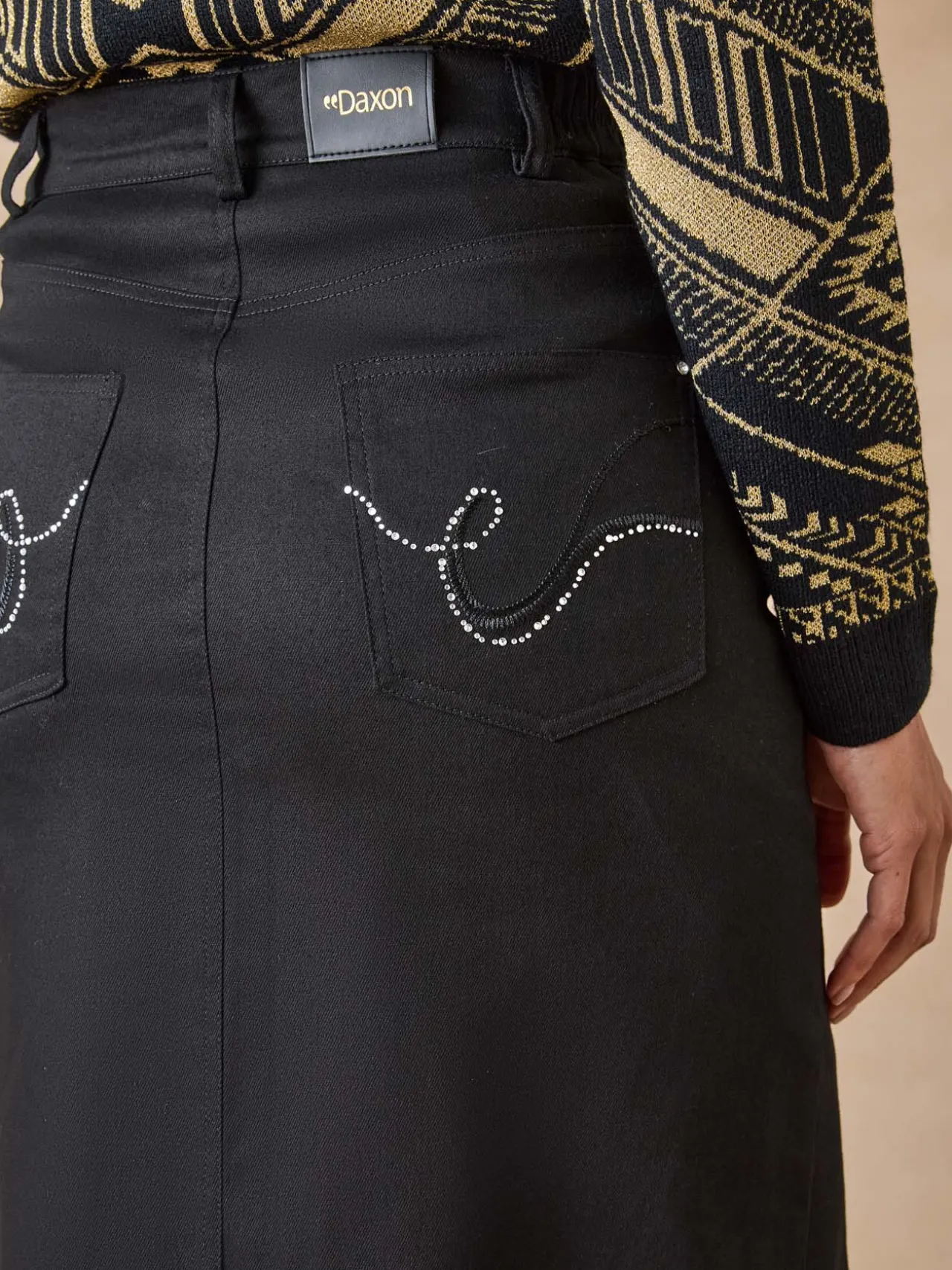 – Poches cavalières et 1 fausse poche ticket devant, poches plaquées dos, avec strass fantaisie