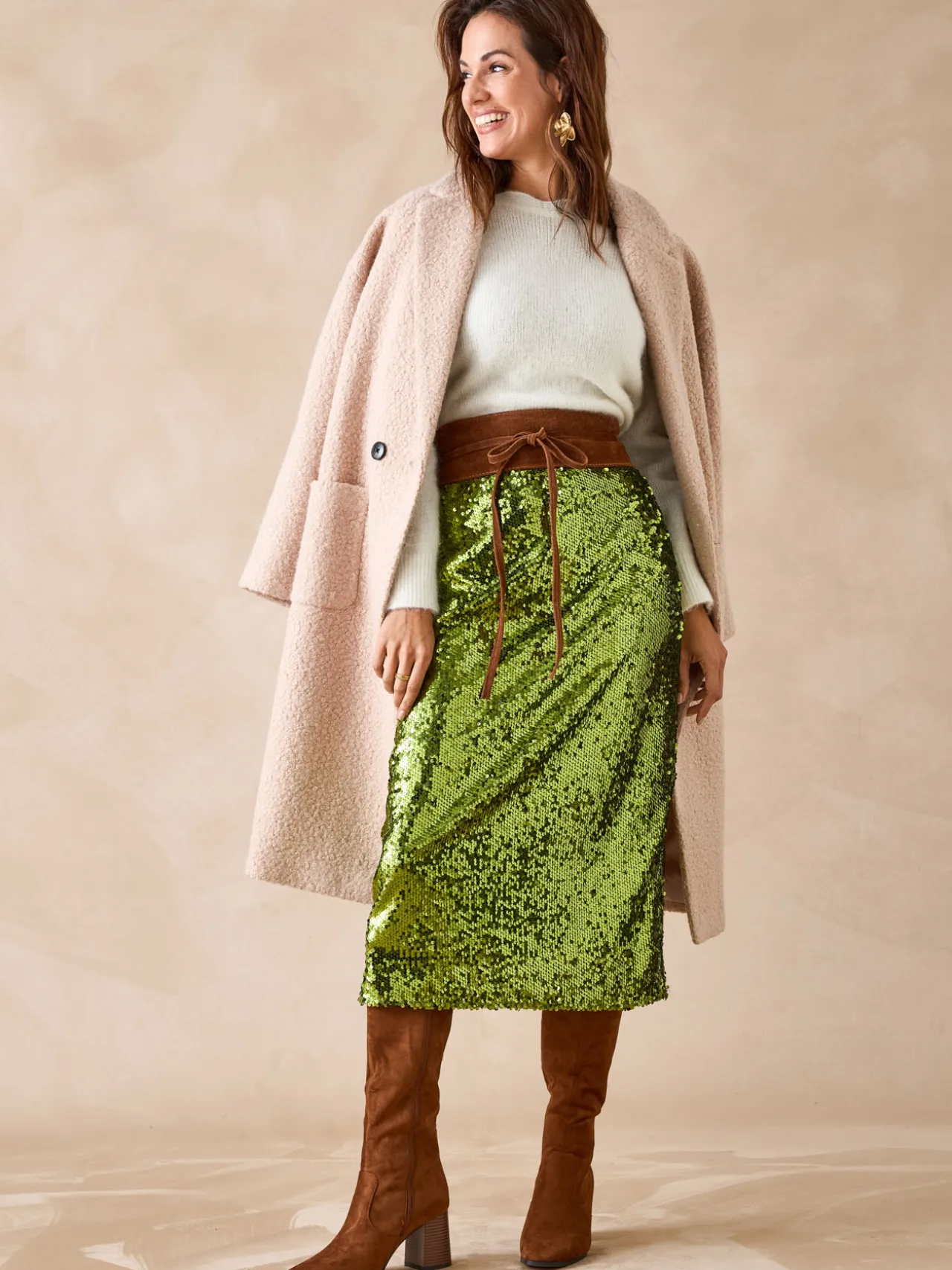Cette jupe à sequins femme est conçue pour s’adapter à toutes les morphologies : petites et grandes tailles.