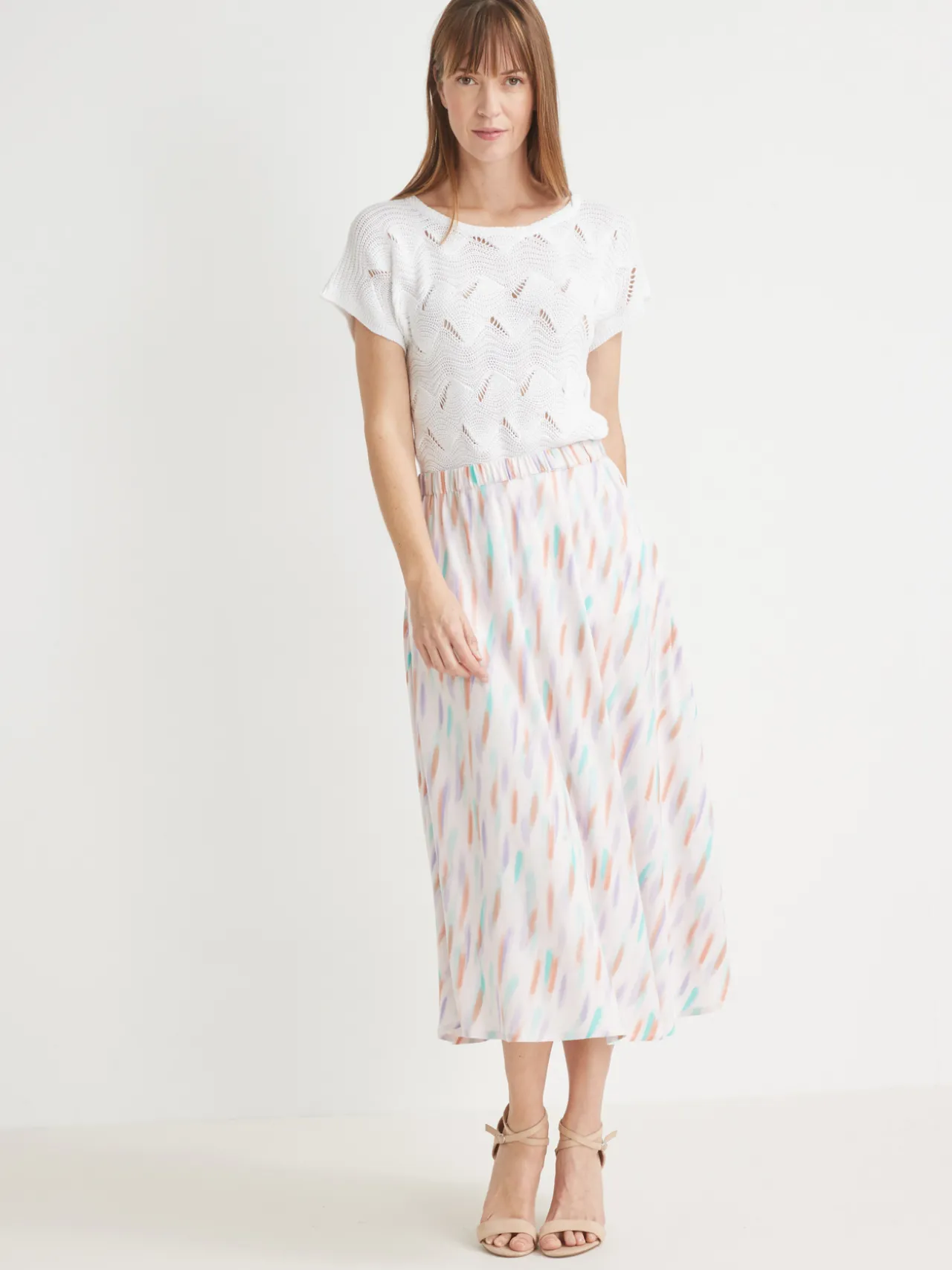Tout élastiquée pour s’adapter souplement à la taille, cette jupe imprimée révèle aussi une belle ampleur. Avec un tee-shirt ou un petit pull, cette jupe évasée compose une tenue juste parfaite !