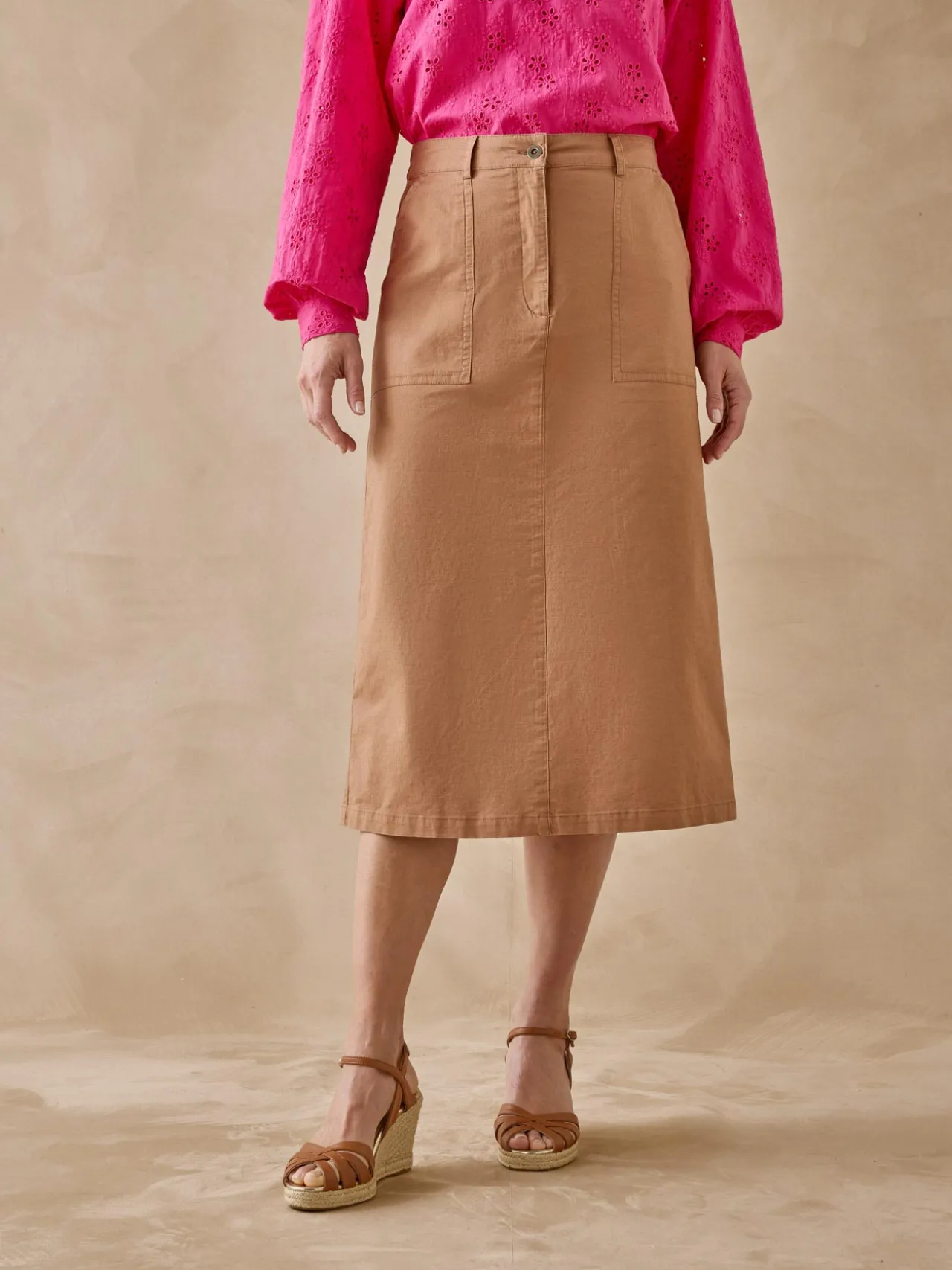 Un mélange coton et lin, avec en plus une touche de lin pour encore plus de confort… Cette jupe en toile est un bon pion du dressing estival ! On aime sa coupe esprit cargo, avec ses grandes poches devant, dans un style pile dans la tendance !