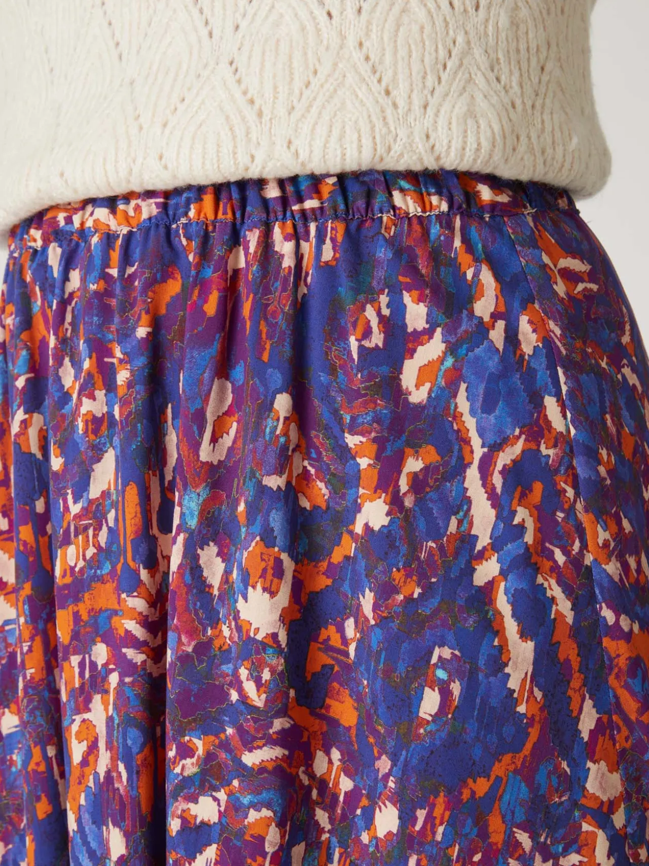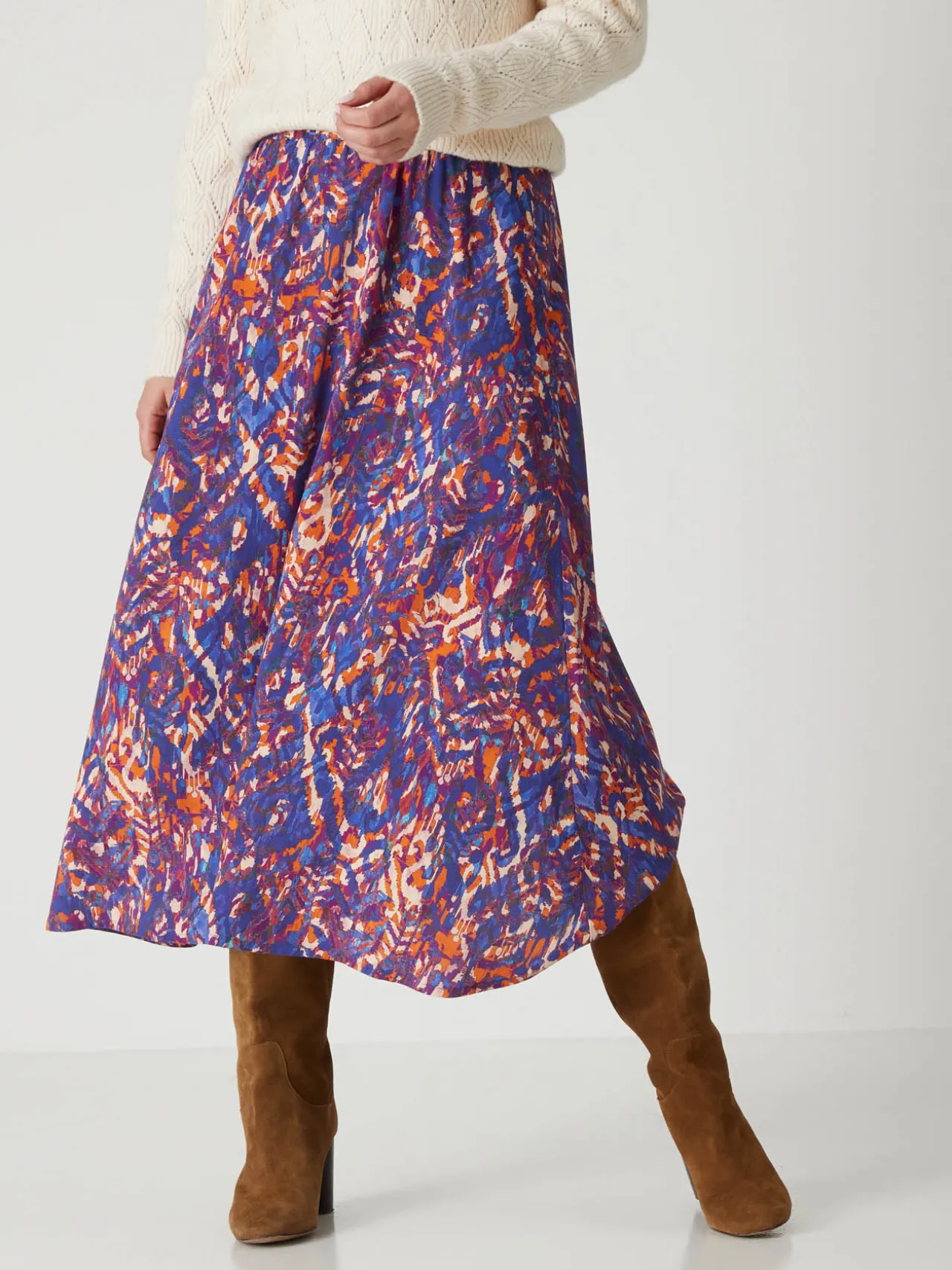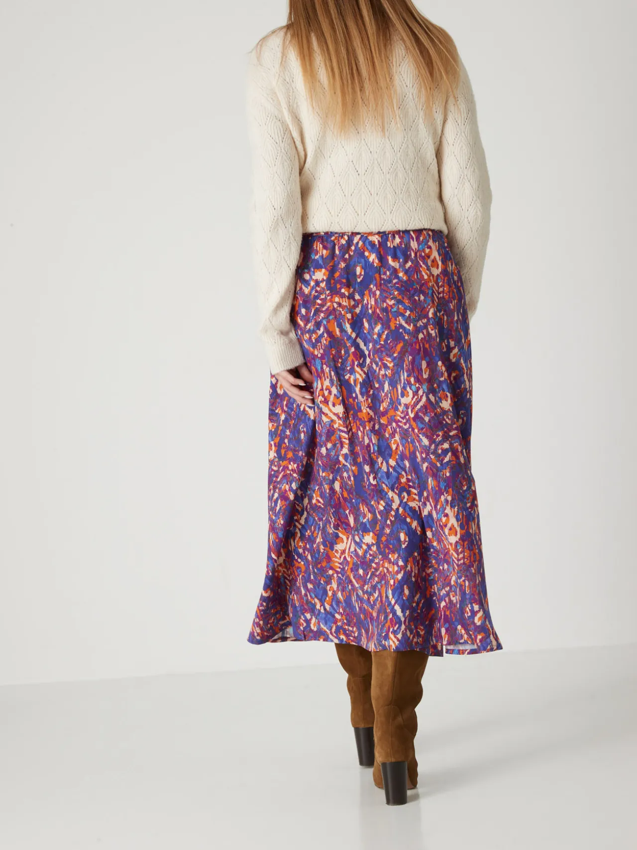 Un joli tissu qui se colore d’un imprimé de saison pour cette jupe longue. Avec une paire de bottes, de boots ou même des baskets blanches, elle a du style !