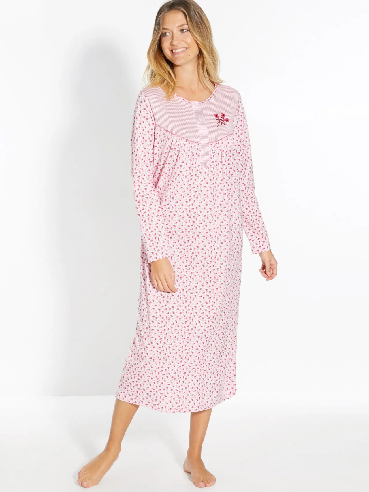 Les chemises de nuit manches longues, à l’imprimé fleuri, très frais.