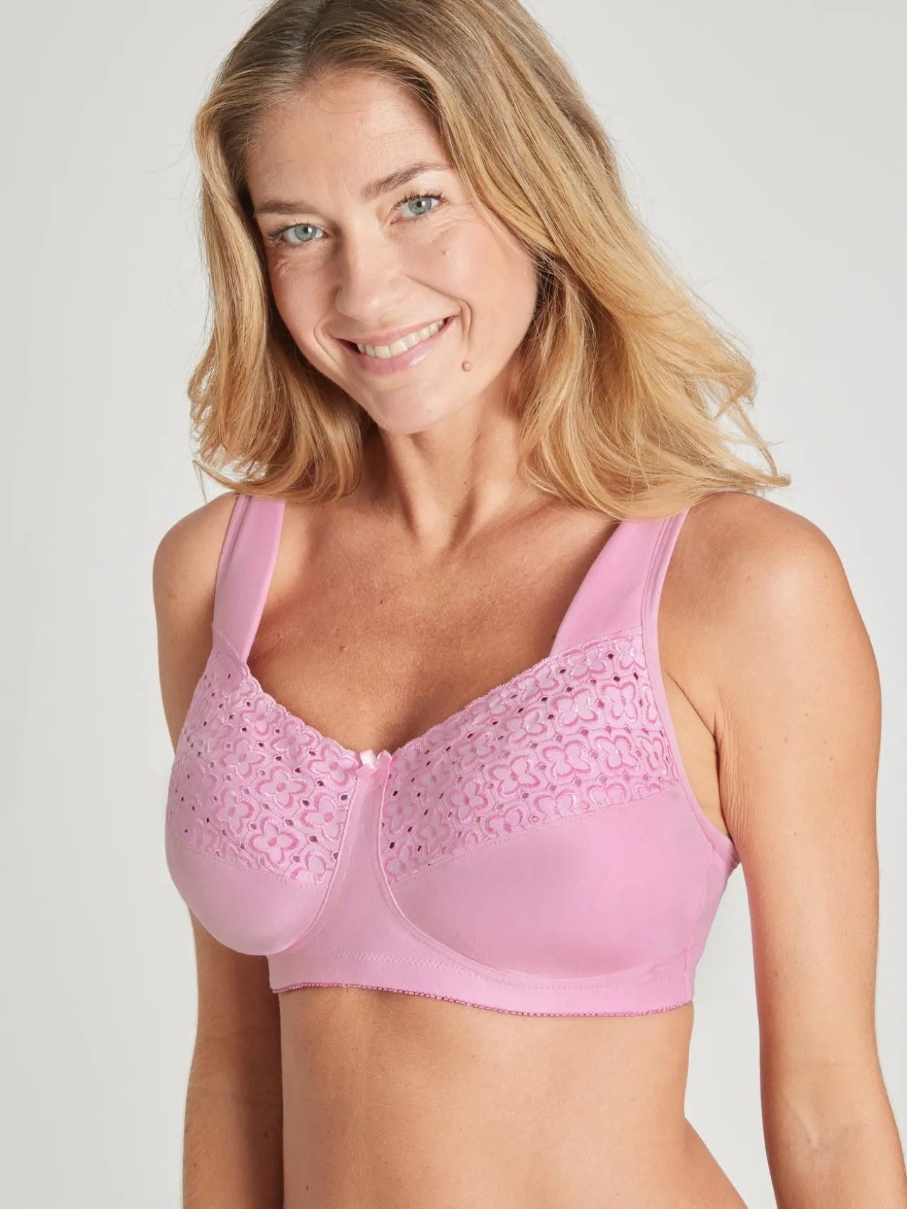 Charme romantique de la broderie anglaise sur le haut des bonnets 2 parties pour ce lot de 2 soutiens-gorge sans armatures.
