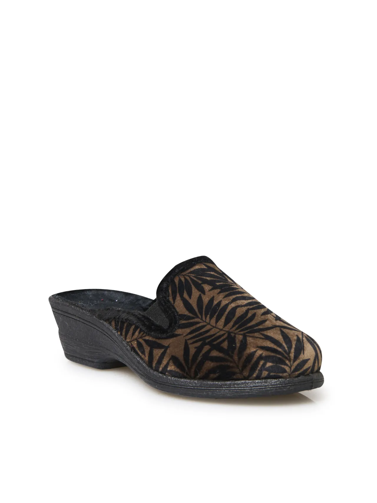 Chaudement recommandées pour la saison, ces mules intérieur molletonné ! Avec leur dessus imprimé feuillage et leur petit talon, elles affichent un joli style.
