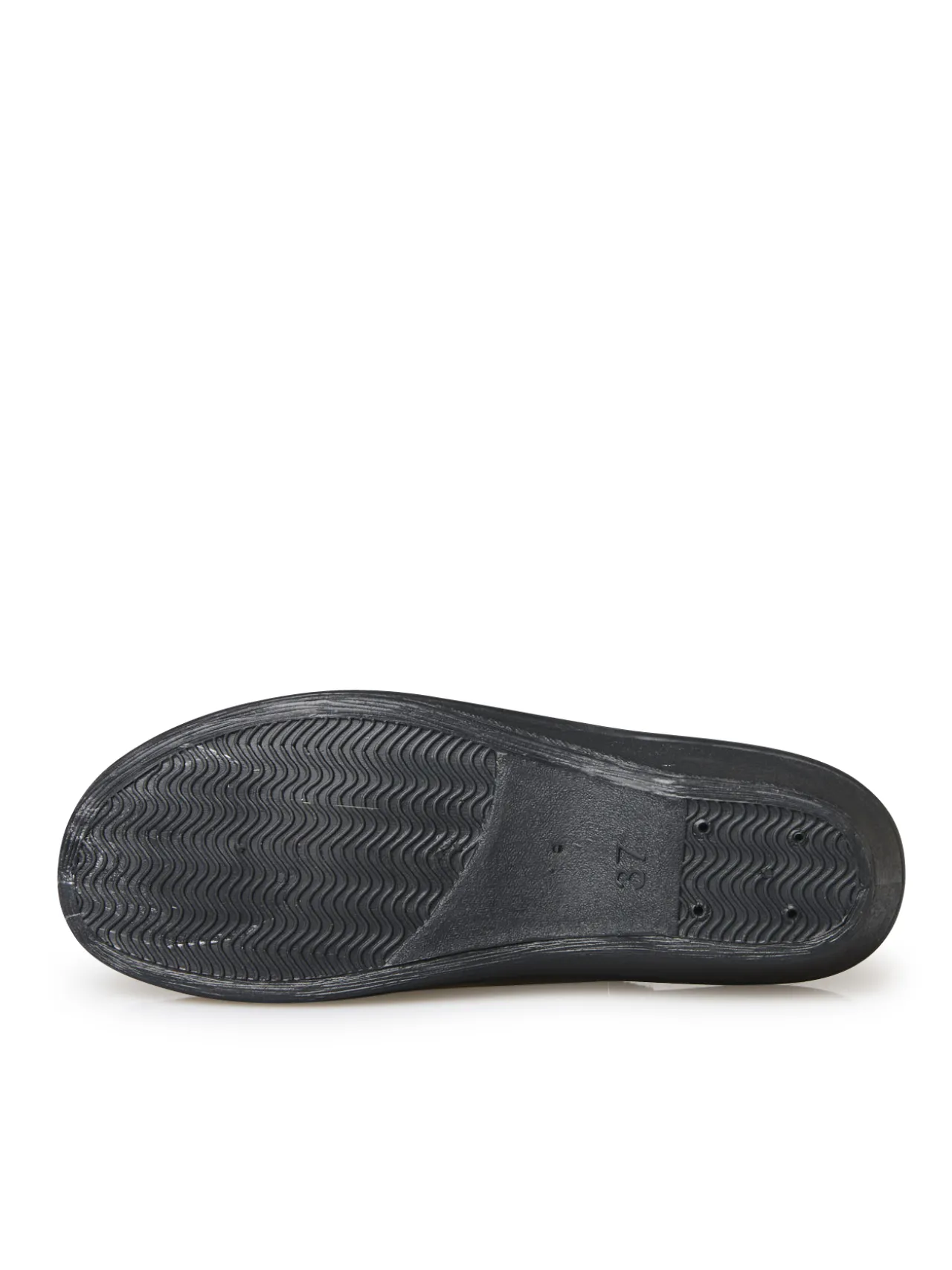 Un joli biais et un petit noeud contrastants sur les dessus des ces pantoufles sont la petite touche de charme et de fantaisie qui nous fait craquer. Sans oublier bien sûr, la douceur de leur intérieur molletonné qui en fait nos mules favorites se la saison.