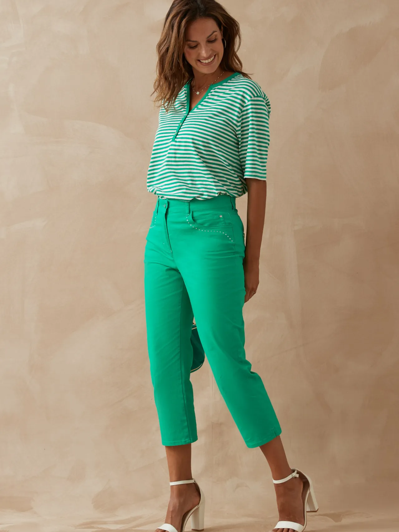 Pièce phare du dressing estival, le pantacourt 5 poches se décline dans une jolie palette de coloris, tout aussi faciles à assortir les uns que les autres. Coordonnez-le à un petit tee-shirt ou une jolie blouse : voilà une tenue idéale !
