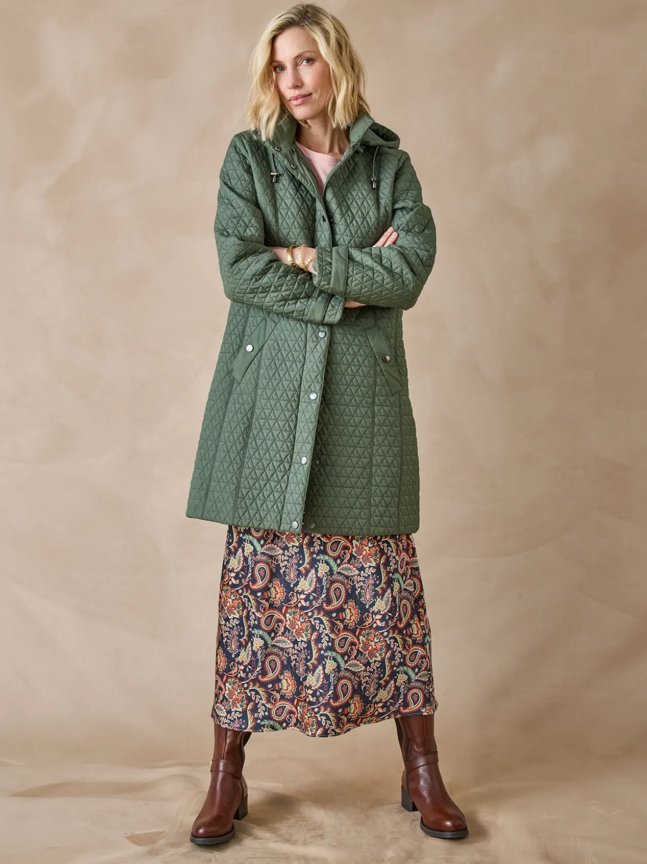 Une bonne longueur pour cette parka ! Son matelassage fantaisie lui donne ce petit côté chic que vous aimez. Déperlante, elle vous permet d’affronter les intempéries avec style !