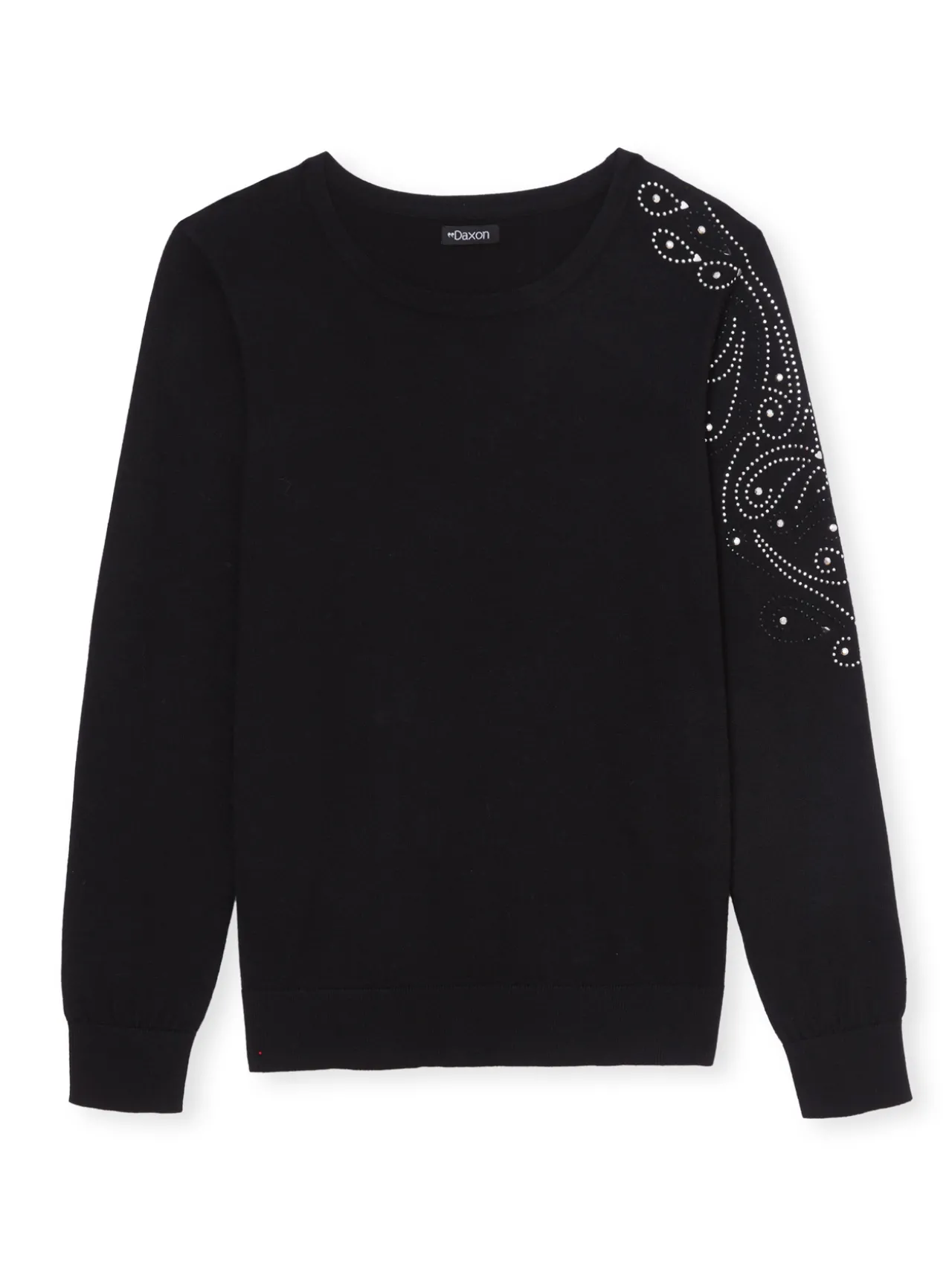 Un pull noir, comme une véritable déclaration de style ! Des strass sur le devant et sur la manche révèlent un charme raffiné. Un pull chic qui sera parfait pour une sortie ou une soirée.