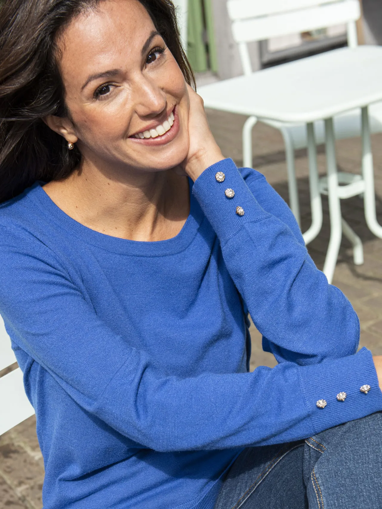 Le pull uni col rond est une valeur sûre du dressing. De jolis boutons-bijoux au bas des manches lui apportent du chic et de l’élégance ! Il vous sera facile d’associer ce pull classique à tous vos pantalons et jupes.
