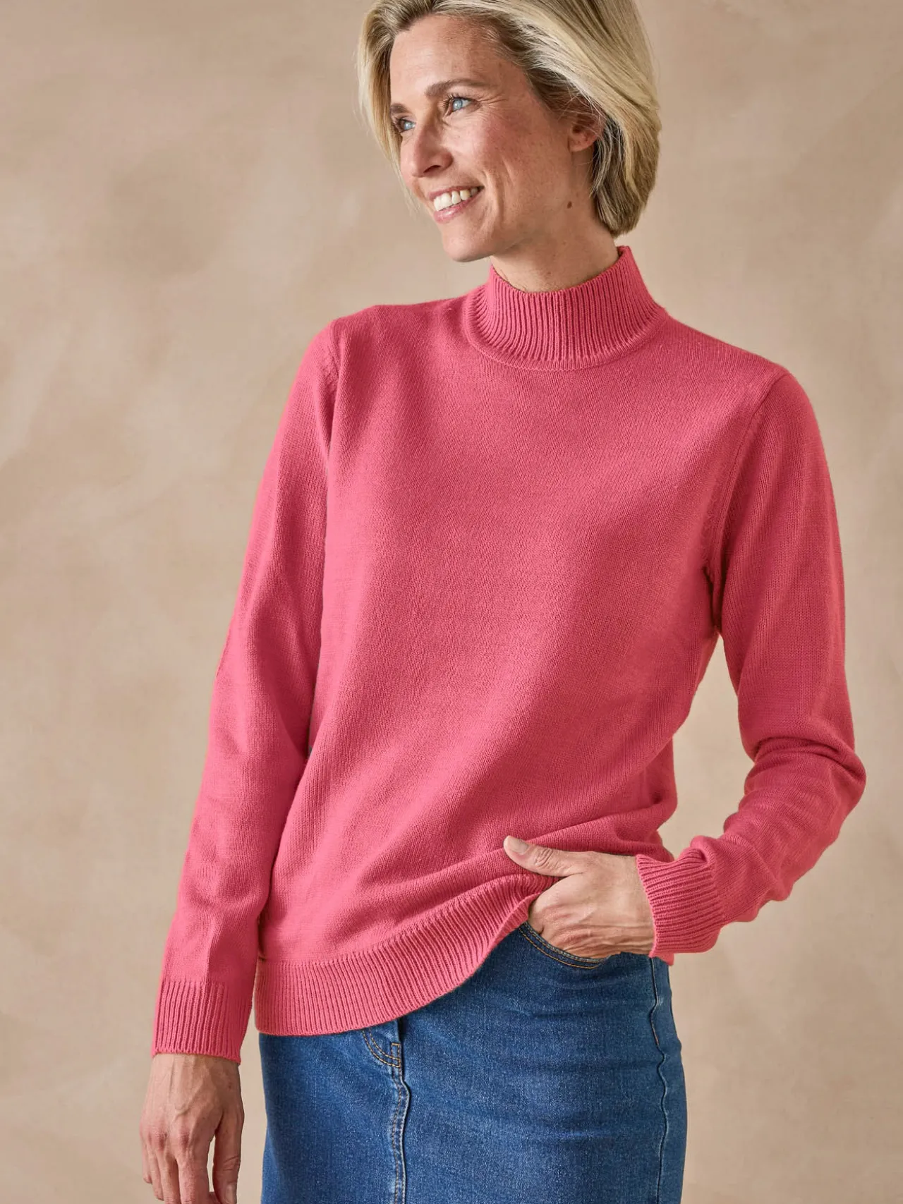 Le pull femme est en maille 100% acrylique, douce et facile à entretenir.