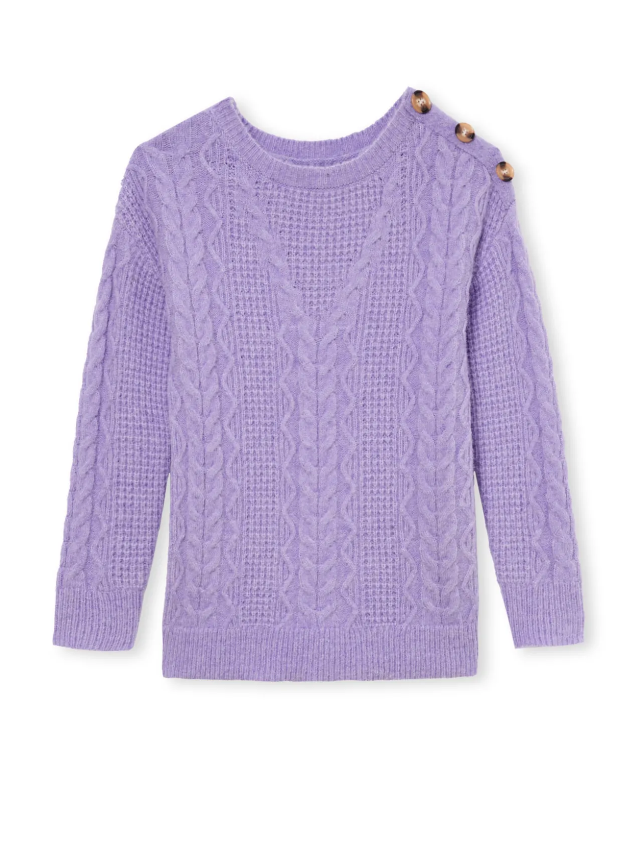 Une maille joliment travaillée, des coloris de saison, de petits boutons sur l’épaule… ce pull encolure ronde a plus d’un atout pour nous charmer.