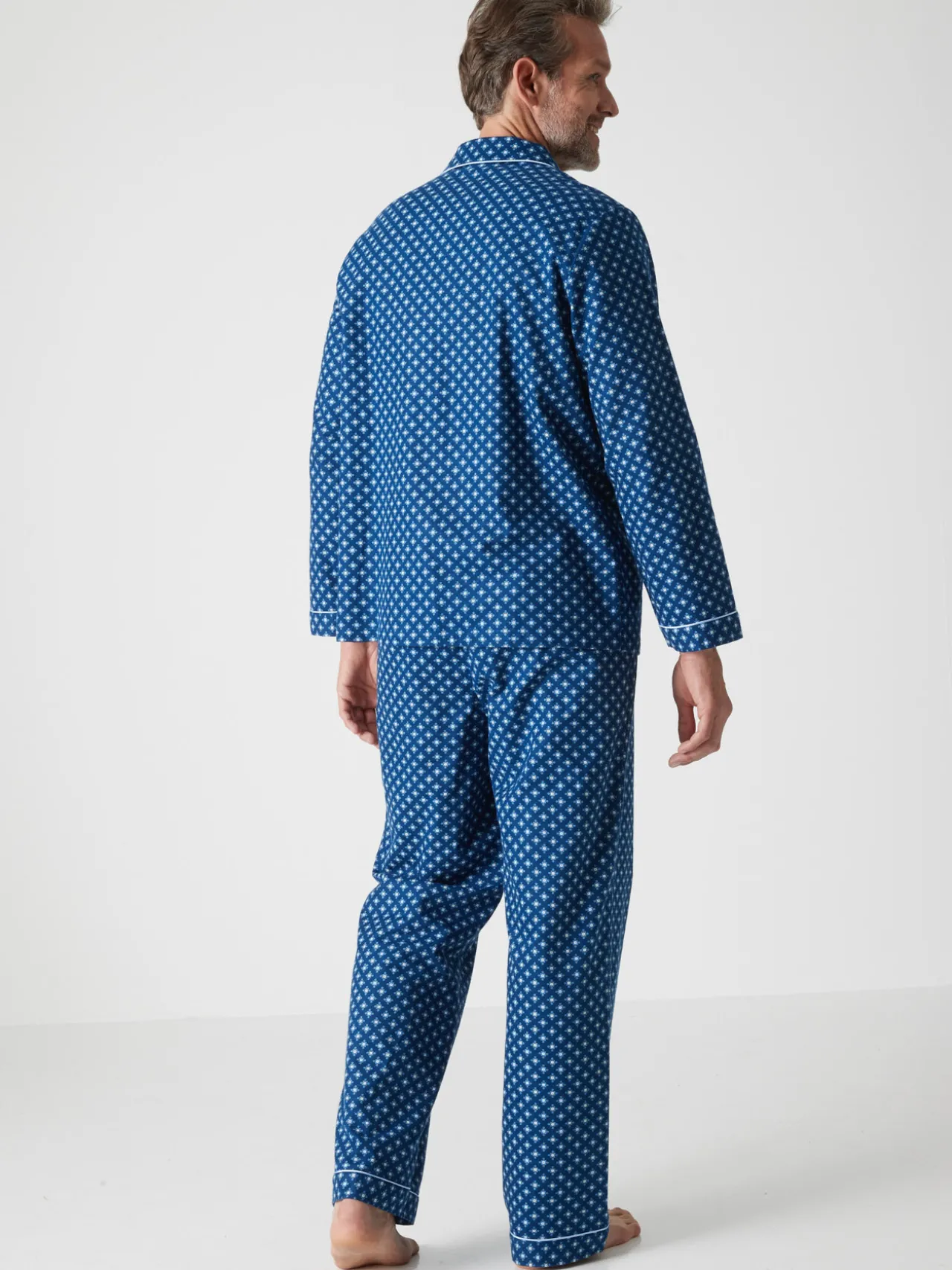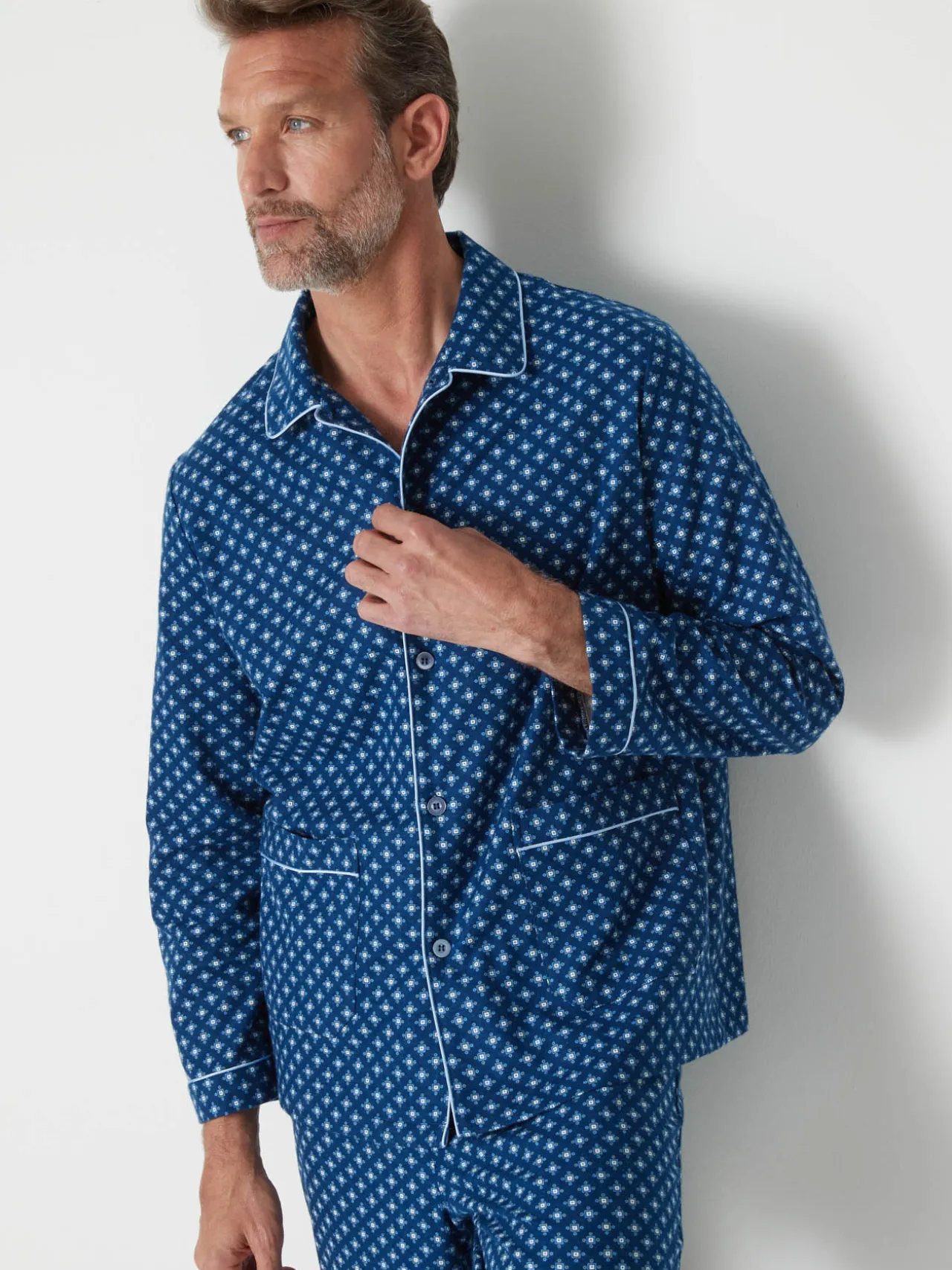 Un pyjama à la coupe classique, interprété dans une flanelle pur coton intérieur gratté, au confort chaleureux.