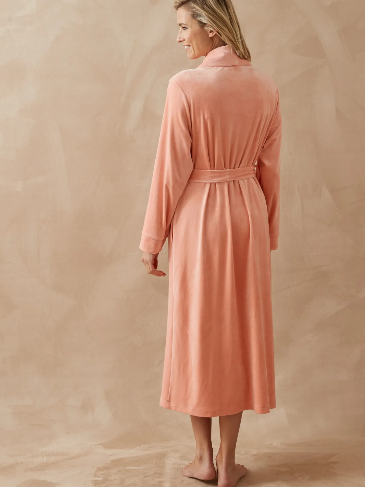 Douceur et qualité d’une robe de chambre toute boutonnée qui joue sur un très beau tissu velours pour faire le bonheur de vos petits matins et soirées. Un vrai plaisir de s’y envelopper !