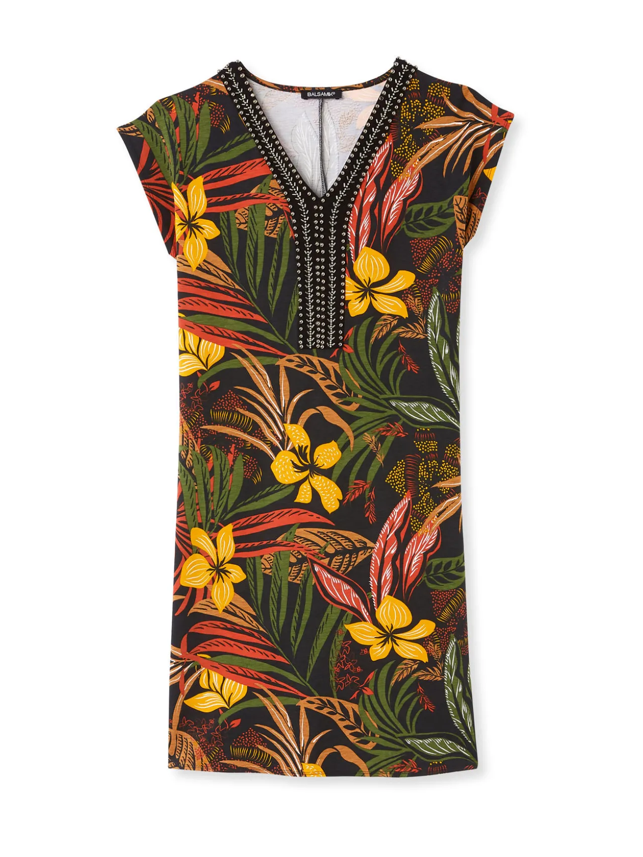 Cette robe avec perles fantaisie existe en grandes tailles.