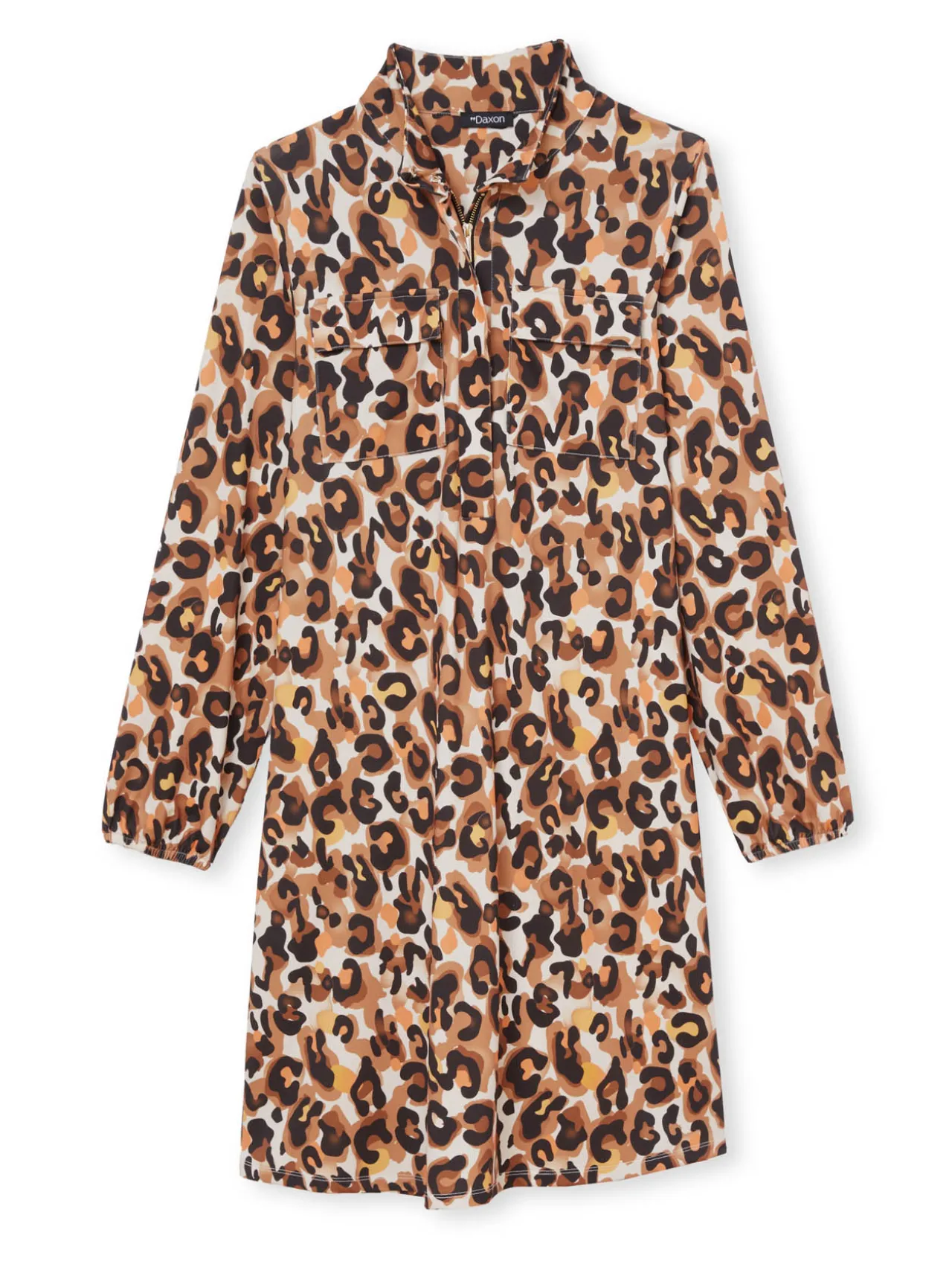Cette robe imprimé peau de bête est conçue pour s’adapter à toutes les morphologies : petites et grandes tailles.