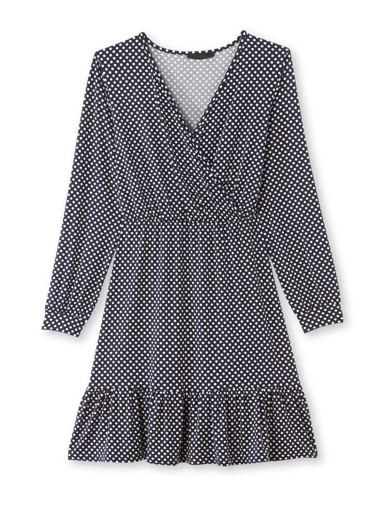 Une encolure effet cache-coeur pour cette robe en maille développée par nos stylistes pour s’adapter à toutes les poitrines : pas de baillement ou de tiraillement pour une allure impeccable ».