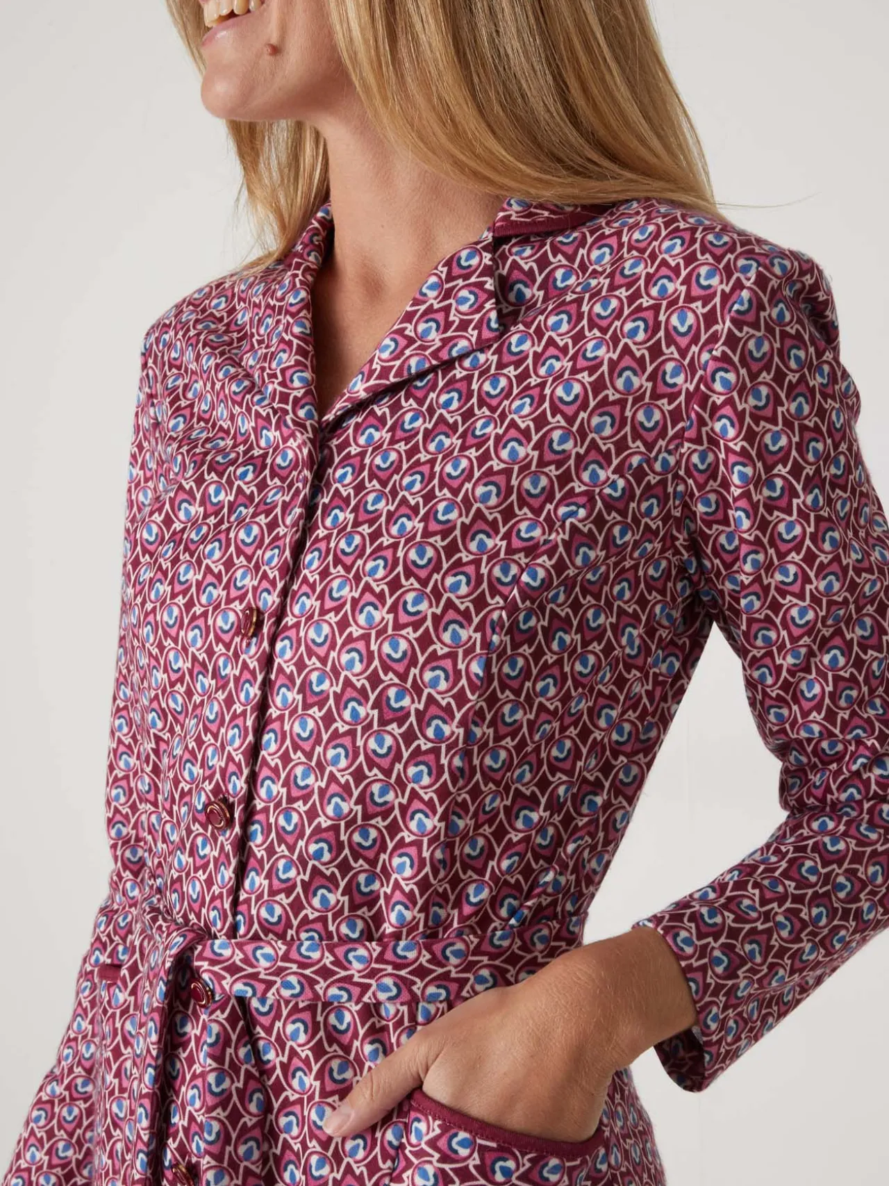 Une robe col tailleur qui s’inscrit dans la lignée des beaux classiques. Sa maille est confortable et agréable à porter et son imprimé chaleureux s’accorde bien à la saison.