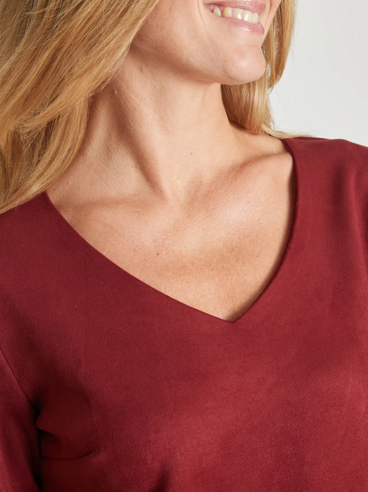 Douceur suédine pour cette robe très agréable à porter. Des découpes obliques structurent sa ligne pour une allure impeccable.