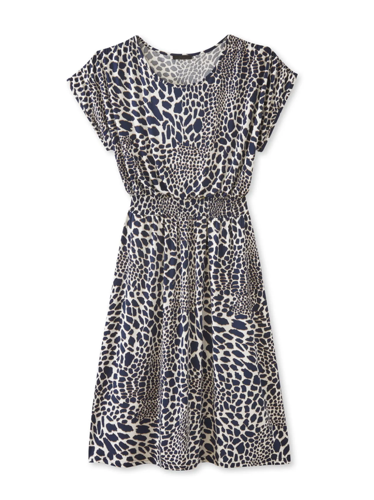 Cette robe imprimée est conçue pour toutes les morphologies : petites et grandes tailles.