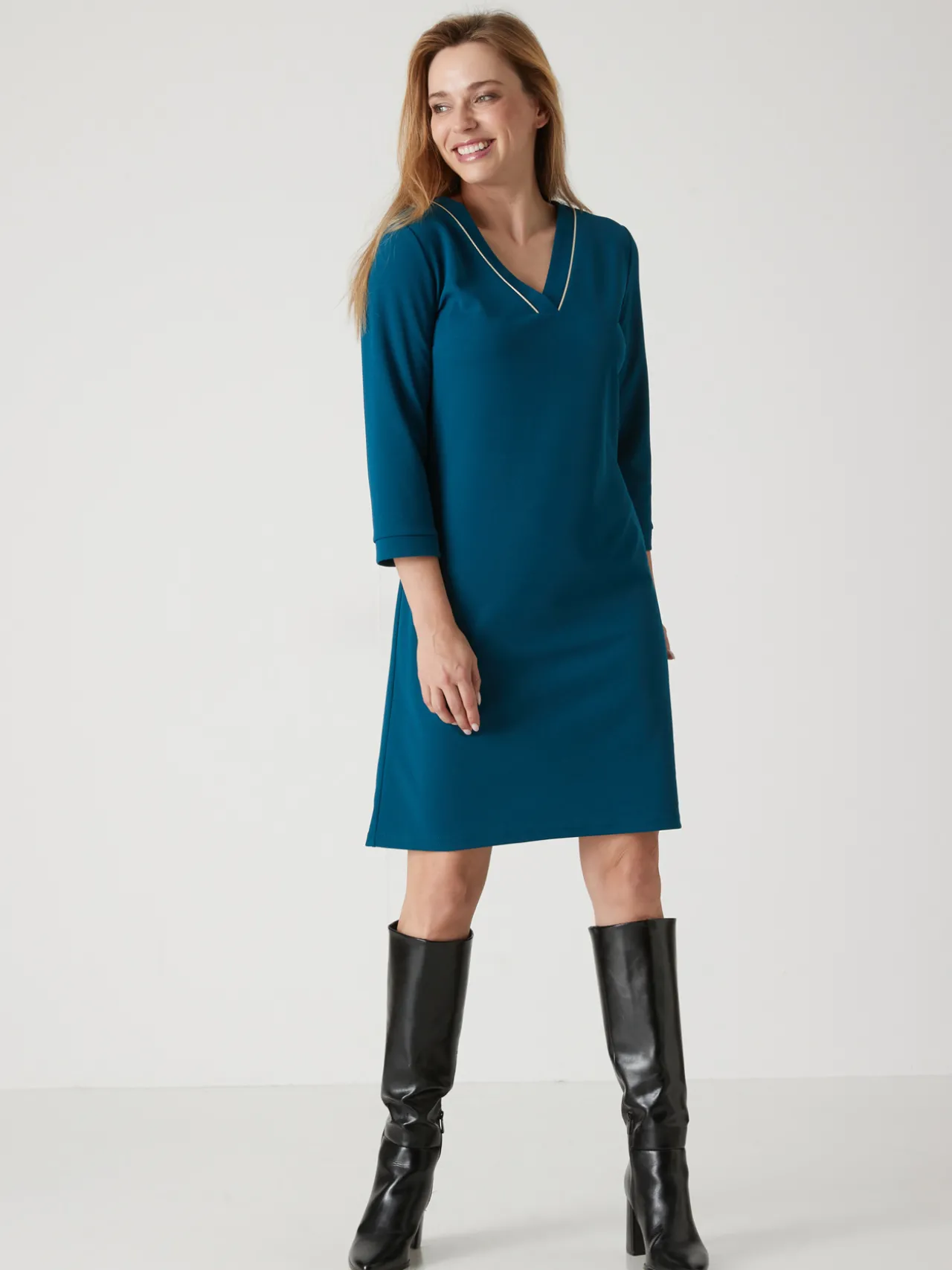 Une forme housse qui convient à toutes les morphologies, une maille fluide et extensible qui ne marque pas les petites rondeurs, une longueur genou qui dynamise l’allure…