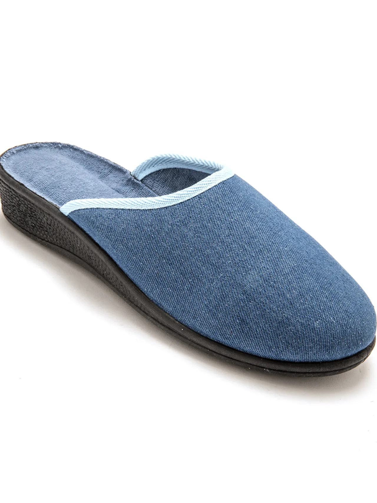 Dessus : textile. Doublure et semelle intérieure éponge. Finition biais. Semelle semi-compensée en élastomère.