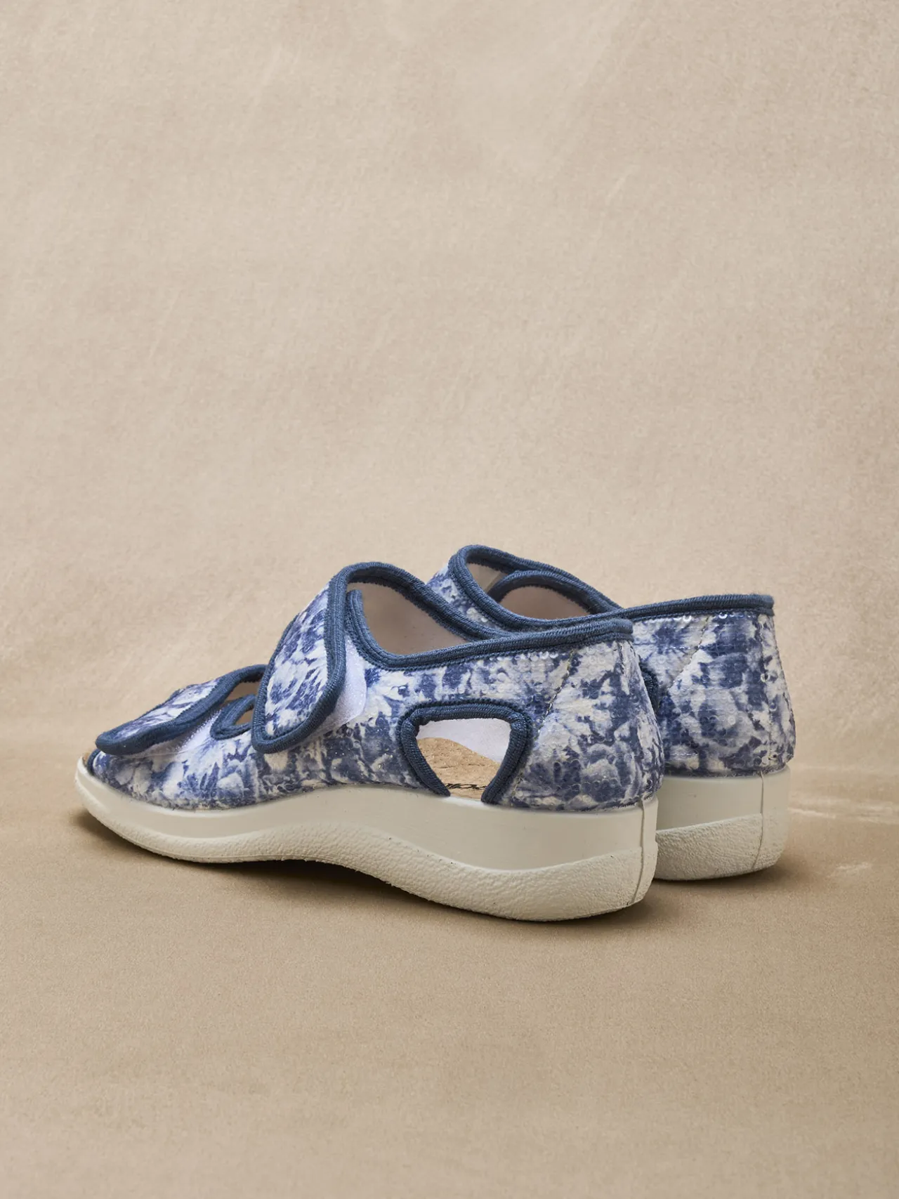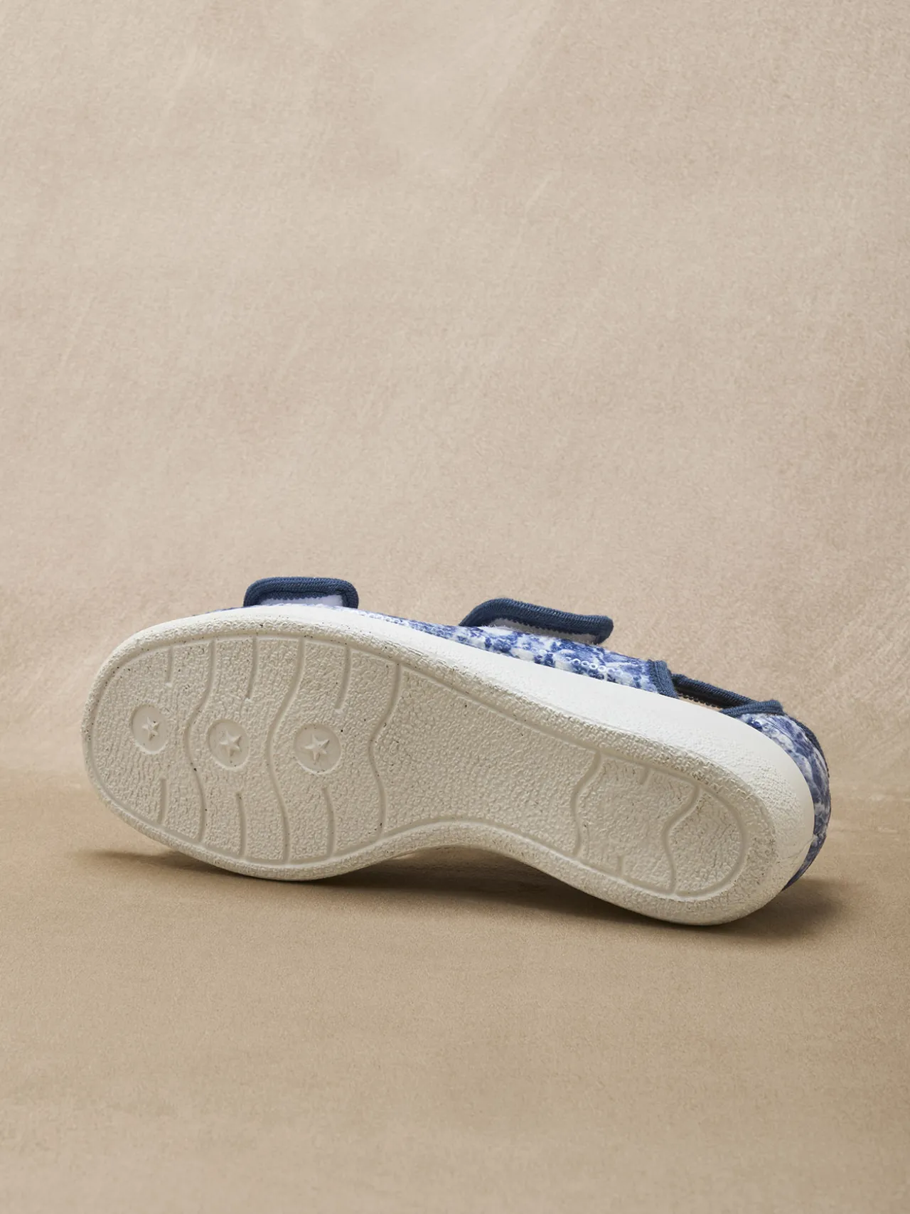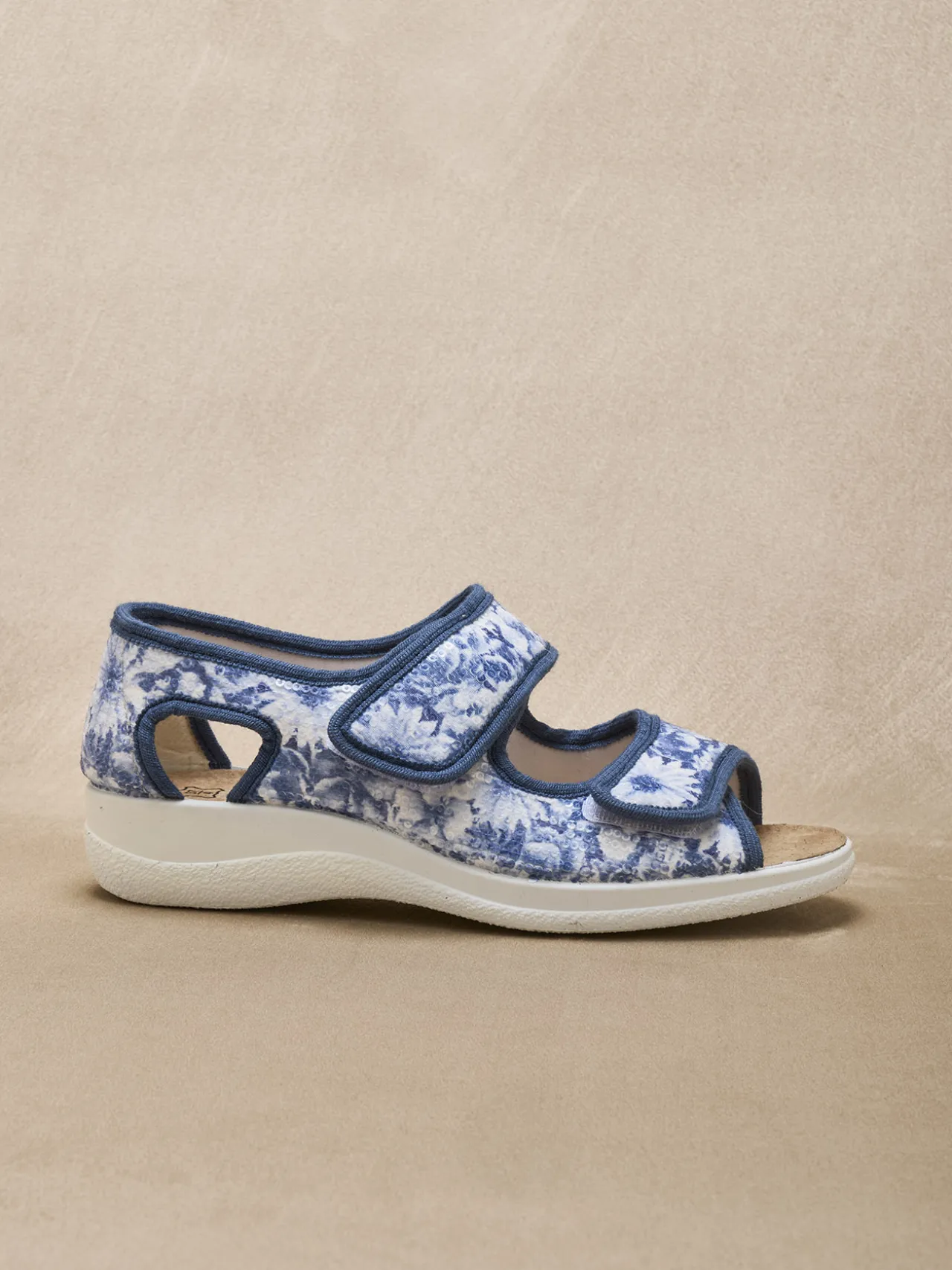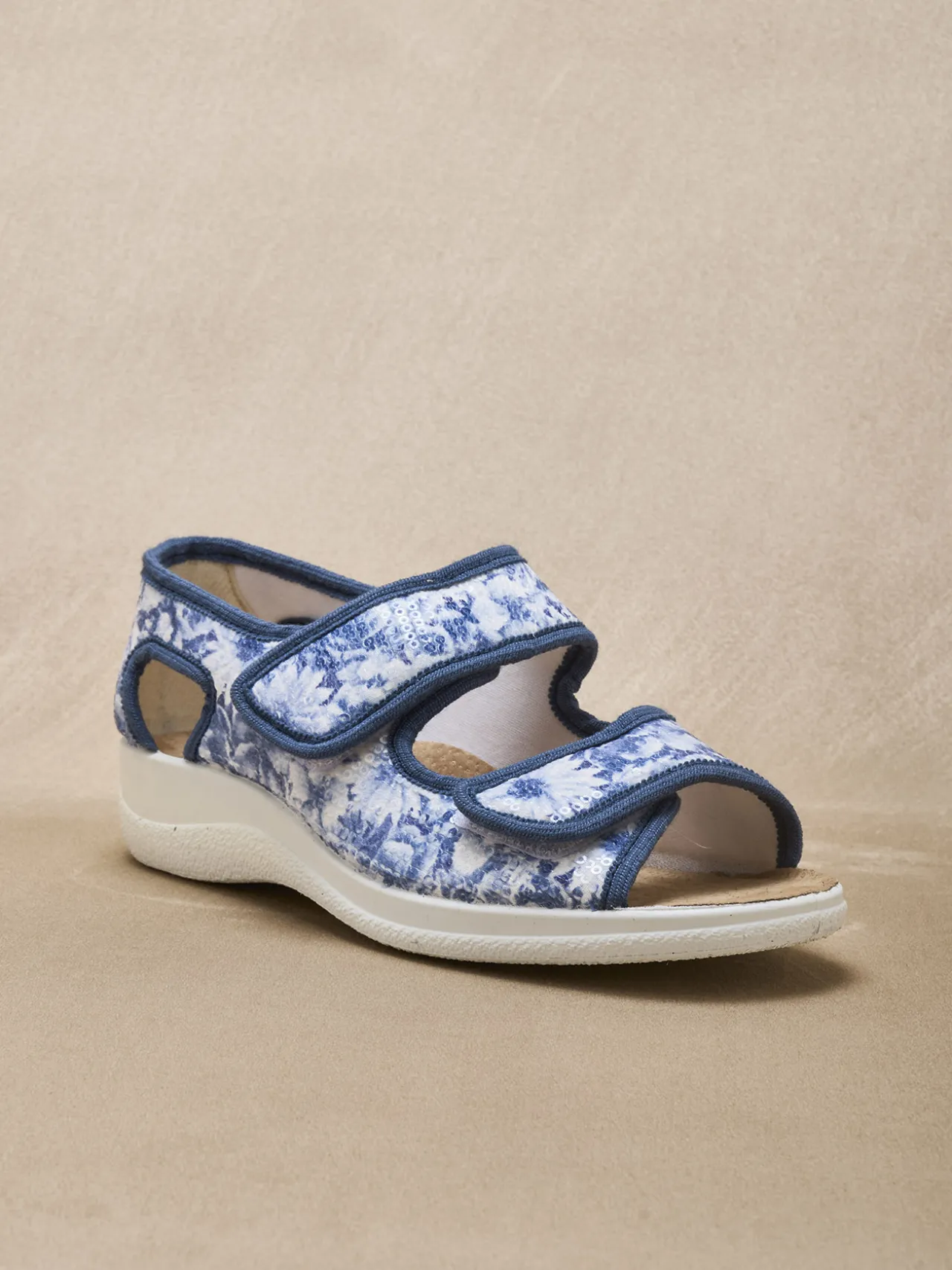 Grâce à leurs 2 pattes scratchs, ces sandales grande largeur s’ouvrent totalement, permettant de loger facilement le pied et de bénéficier d’un ajustement parfait. Leur dessus textile agrémenté de sequins est joué dans un joli imprimé fleuri, pile dans la tendance estivale.