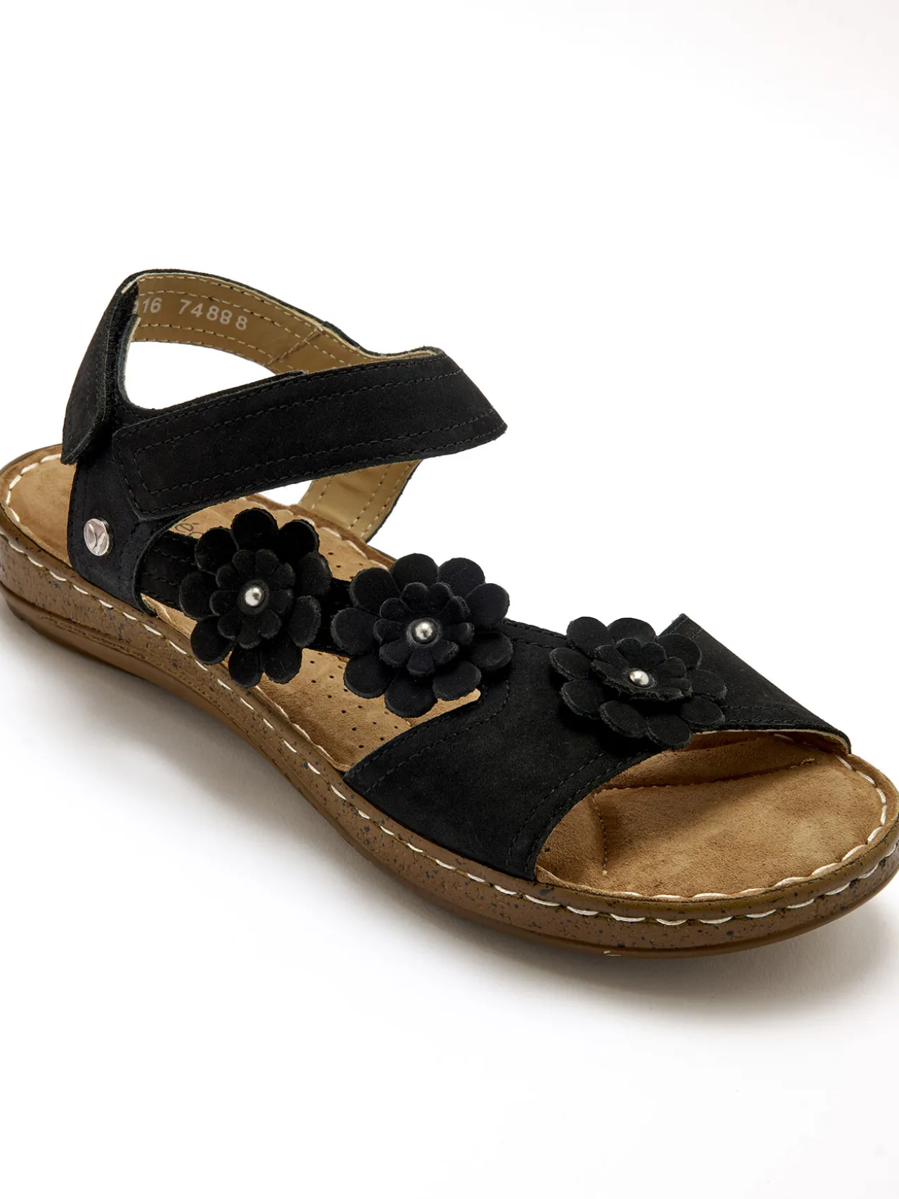 Les 2 pattes scratchs, sur le dessus et à la cheville, de ces sandales PEDICONFORT® permettent un ajustement au millimètre. Une lanière côté animée de fleurs en cuir découpé ajoute une petite touche stylée !