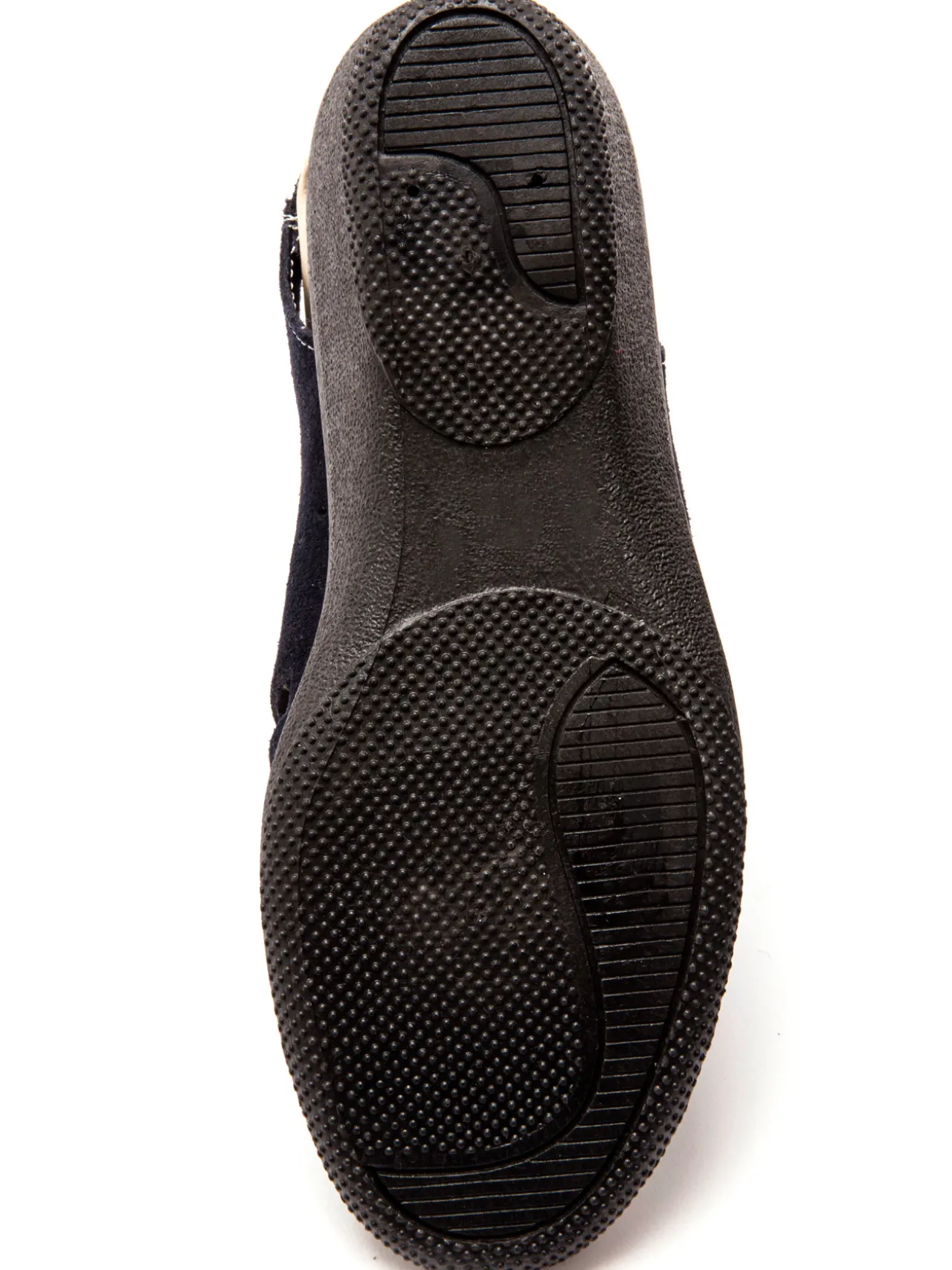 Dessus : cuir velours ajouré avec élastique central. Boucle réglable à l’arrière. Non doublées. Semelle intérieure : éponge. Semelle : élastomère.
